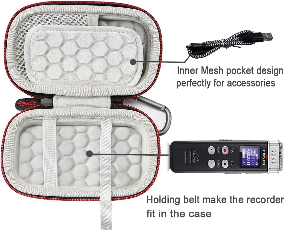 • سهلة الحمل: تتميز هذه الحافظة الصلبة لجهاز تسجيل الصوت الرقمي EVISTR بسعة 16 جيجابايت بأنها خفيفة الوزن وصغيرة الحجم ويمكن وضعها في حقيبة الظهر أو حقيبة الكمبيوتر المحمول أو الأمتعة.