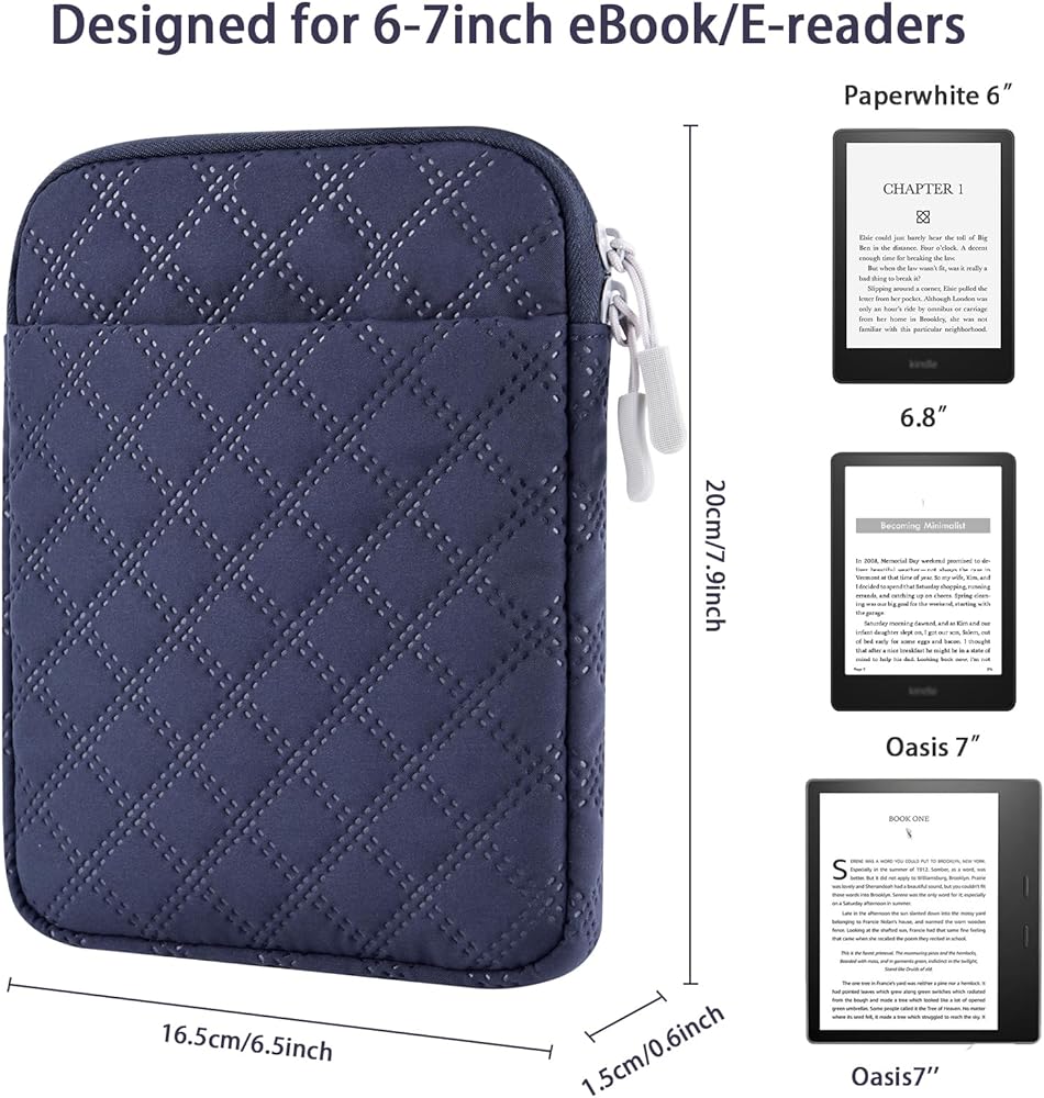 جهاز متوافق: يمكن أن تناسب هذه الحقيبة تمامًا الكتب الإلكترونية/القارئ الإلكتروني مقاس 6-7 بوصة: لـ Paperwhite 6 بوصات/ إصدار الأطفال 6 بوصات/ Paperwhite Kids 6.8 بوصات/ Paperwhite Signature Edition 6.8 بوصات/ Touch 6.8 بوصات/ Oasis 7 بوصات ( الجيل التاسع/العاشر)/Kobo Clara HD / Kobo Nia وSony/Touch HD 3