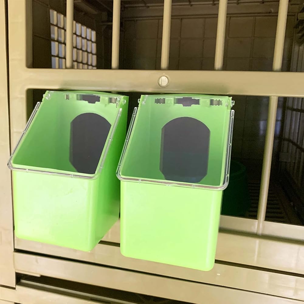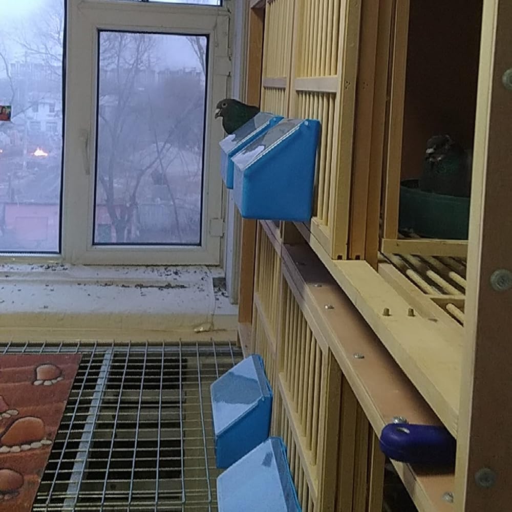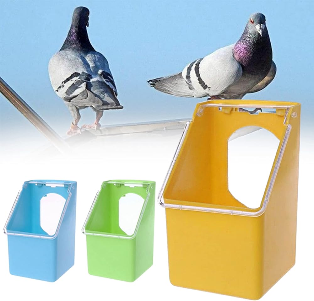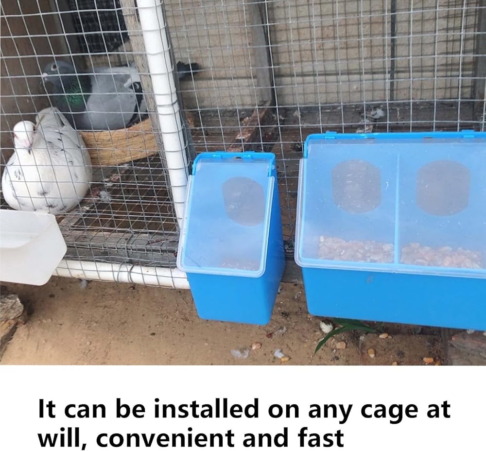 جهاز تغذية الطيور معلق على الجزء الخارجي من قفص الطيور وقفص الحمام يجعل من السهل إضافة الأعلاف دون إخافة الطيور. إنها ليست مريحة فقط لتنظيف وتنظيف الأعلاف المتبقية، ولكن أيضًا لإضافة تغذية جديدة.
