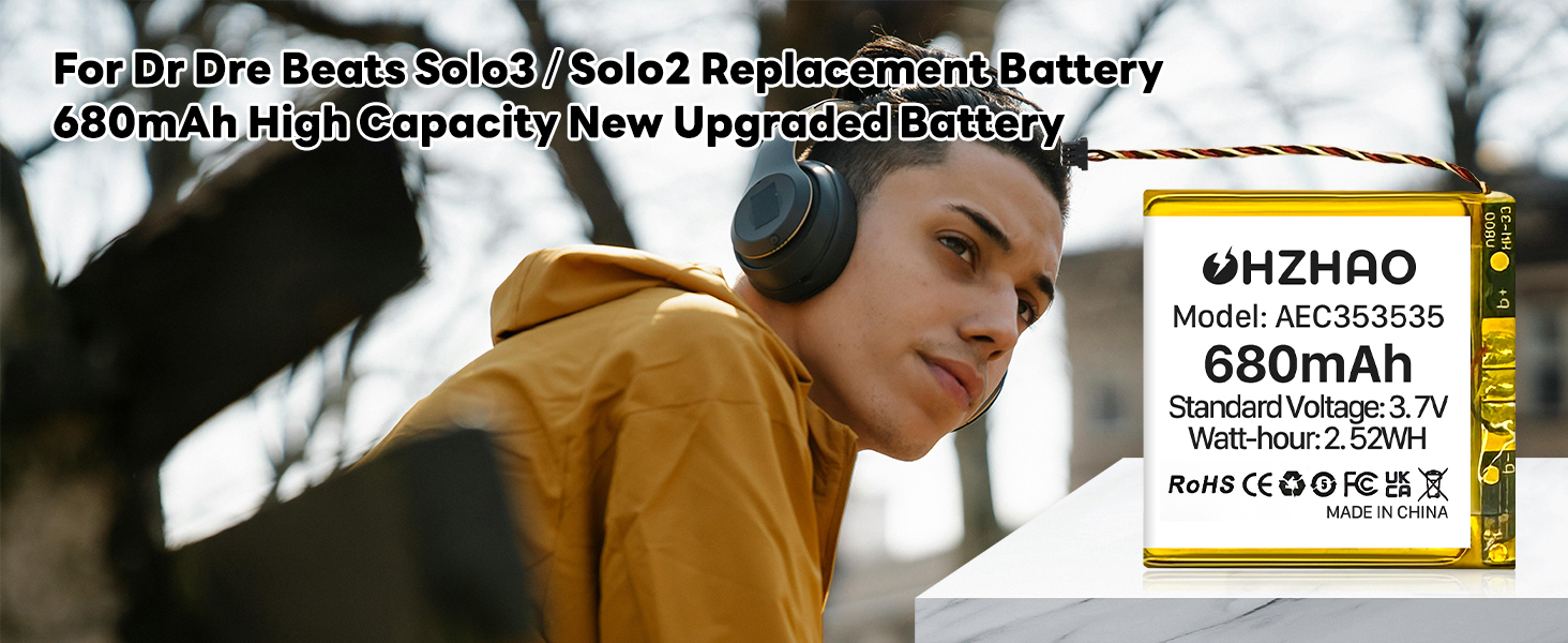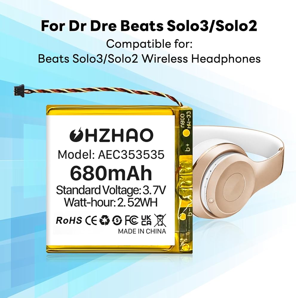 بطارية بديلة 680 مللي أمبير في الساعة AEC353535 لسماعات Beats by Dr Dre Beats Solo3 Solo2 اللاسلكية، بطارية عالية السعة 3.7 فولت