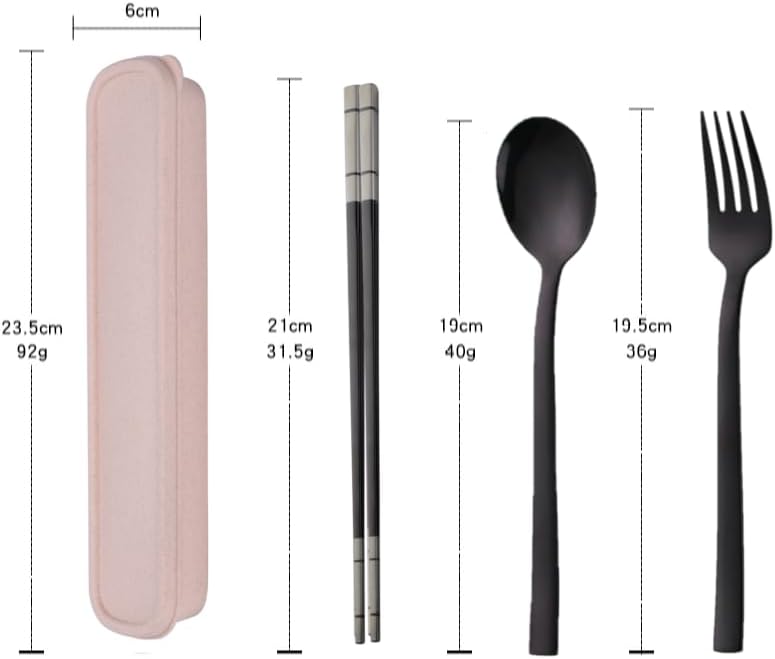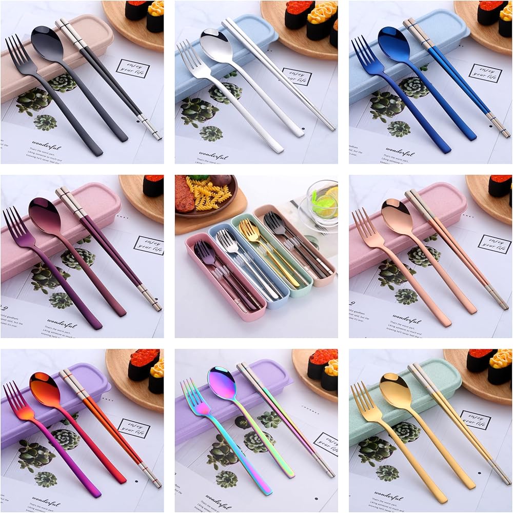 Portable Convenience: This 4-piece cutlery set includes a fork, spoon, chopsticks, and a storage case for easy portability.