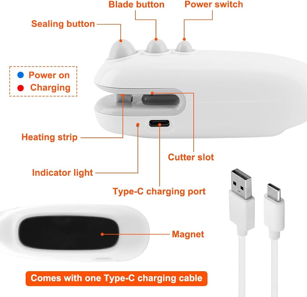 【FAST SEALING】Adopts heating unit technology. When you press the sealing button, the heating unit will instantly reach the sealing working temperature, fast sealing. The heating structure is located inside and is not easy to touch.