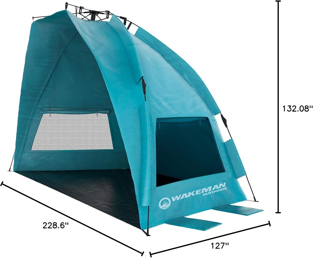 • ميزات مريحة - تعمل أعمدة الألياف الزجاجية والجيوب الرملية على تثبيت الظل المنبثق ضد الرياح، وتوفر النوافذ الشبكية التهوية والحماية من الحشرات. تشتمل هذه الخيمة المحمولة أيضًا على جيب تخزين لإكسسوارات يوم الشاطئ.
