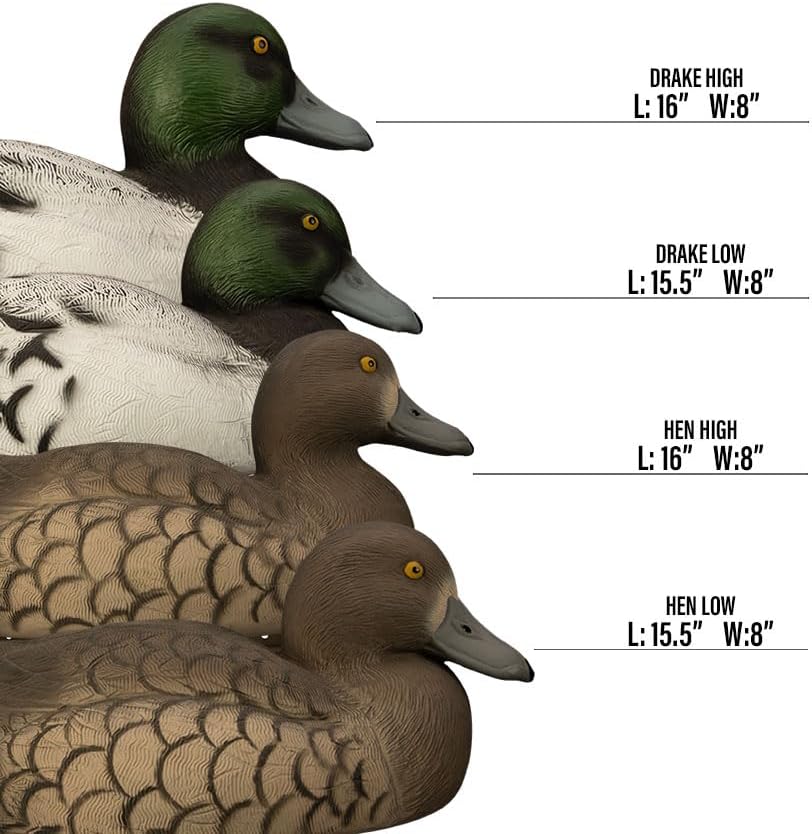 أوضاع الجسم والرأس المتعددة تخلق انتشارًا واقعيًا ومتنوعًا لشرك البط. تحتوي العبوة على ستة شراك بطة سوبر ماغنوم كبيرة الحجم مملوءة بالرغوة: 4 بطانات و2 دجاجة. عملية رسم مفصلة للغاية لمزيد من الواقعية.