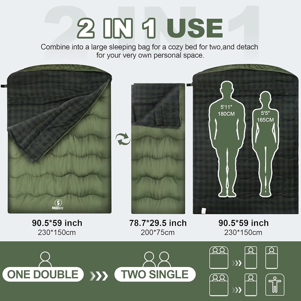 • الراحة والدفء: حقيبة النوم المزدوجة المصنوعة من القطن من FORINBUY مع بطانة ناعمة من الفلانيل ومملوءة بألياف مجوفة فاخرة دافئة ومريحة. بالإضافة إلى ذلك، تتميز حقيبة النوم بتصميم أنبوب تهوية واسع للرقبة والكتف، مع أربطة قابلة للتعديل، والتي يمكنها حجب الهواء البارد و تعزيز أقصى قدر من الدفء. سواء كنت تتخييم أو تستكشف الهواء الطلق، فهو يوفر حماية ممتازة ضد البرد، وسوف تشعر بالدفء طوال الليل