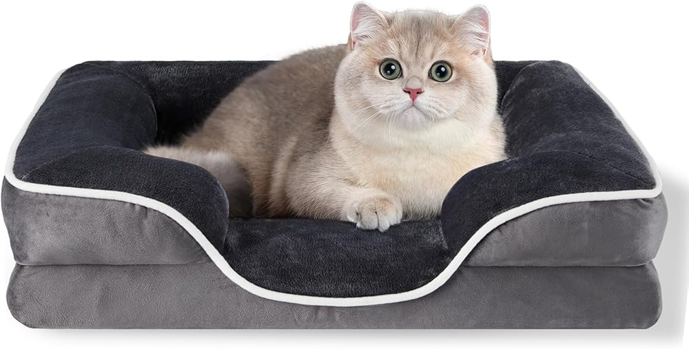 سرير للكلاب من FluffyDream مقاس 60.96 سم للكلاب الصغيرة، سرير للكلاب من الإسفنج الذكي، سرير على شكل أريكة للكلاب مصنوع من الإسفنج على شكل قفص بيض مع غطاء قابل للغسل وقابل للإزالة، رمادي