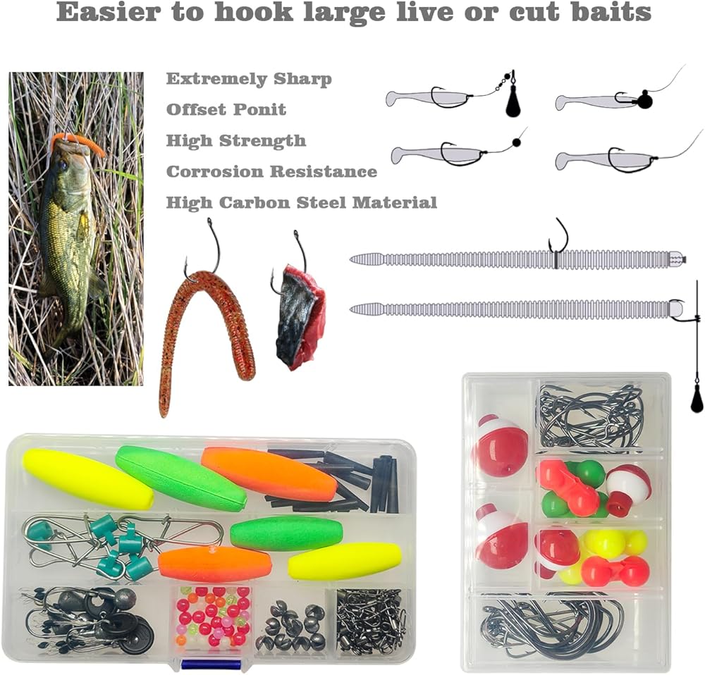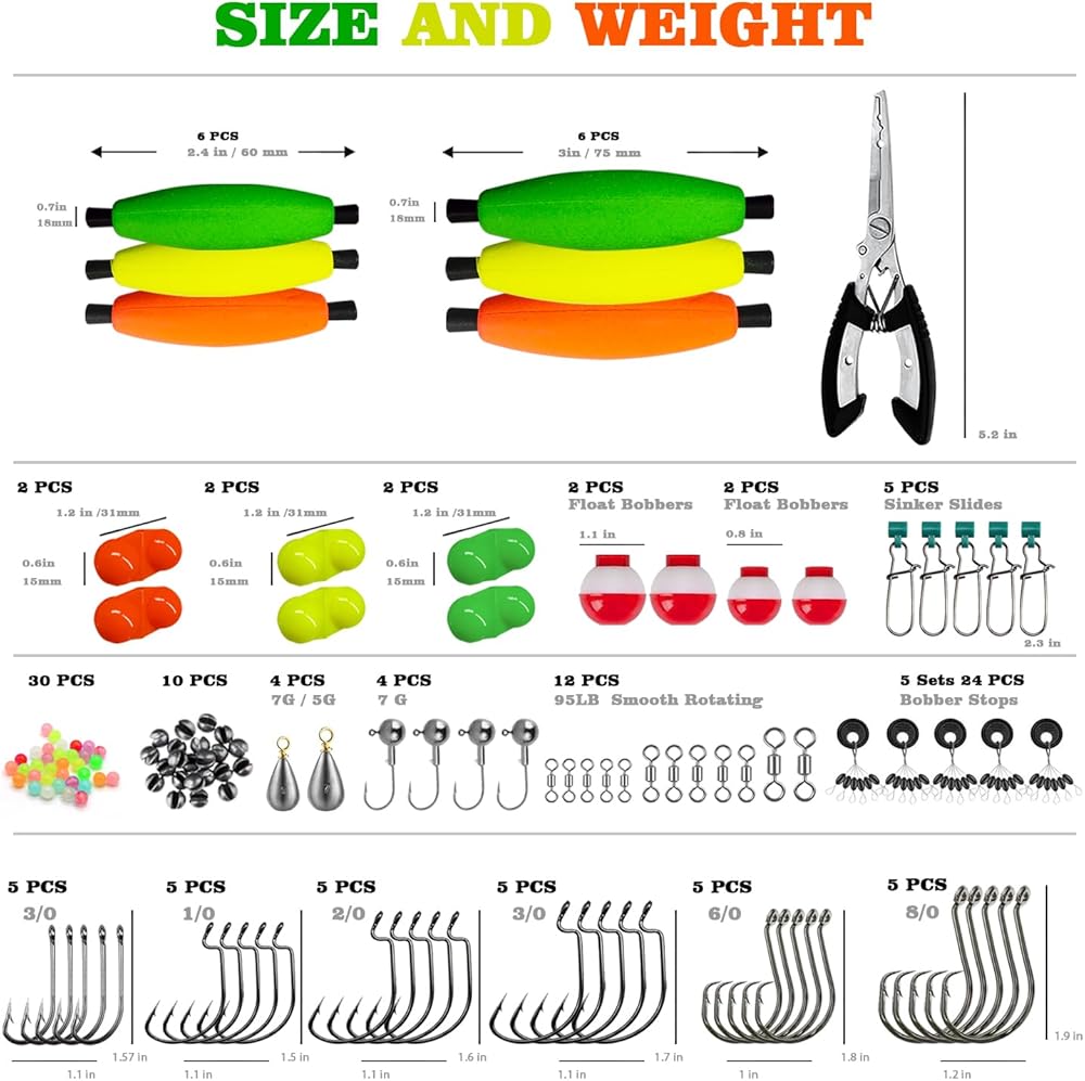 Tackle Box with Full Fishing Gear: This tackle box comes fully stocked with 30pcs bass hooks, 6pcs EVA peg float, 4pcs jig heads, 4pcs bobbers, 35pcs fishing beads, 5pcs bobber stoppers, 12pcs barrel swivels and 15pcs snap swivel. It is the perfect all-in-one tackle box for fishing novices.