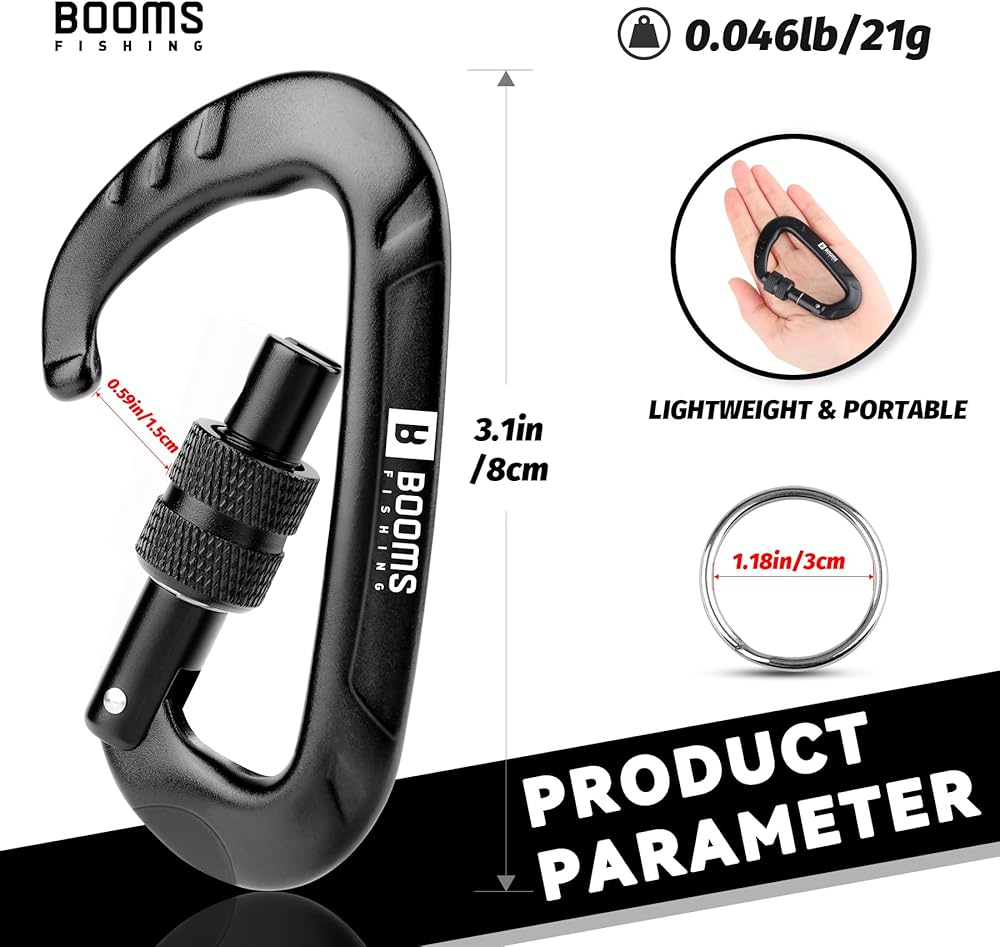 مجموعة CARABINERS ذات قيمة عالية مع حلقة مفاتيح: تتضمن عملية الشراء الخاصة بك 3 حلقات تسلق عالية التحمل و3 حلقات مفاتيح، مما يوفر لك القيمة والراحة. حافظ على تنظيم مفاتيحك ومعداتك آمنة مع حلقة التثبيت المتميزة من Booms Fishing.