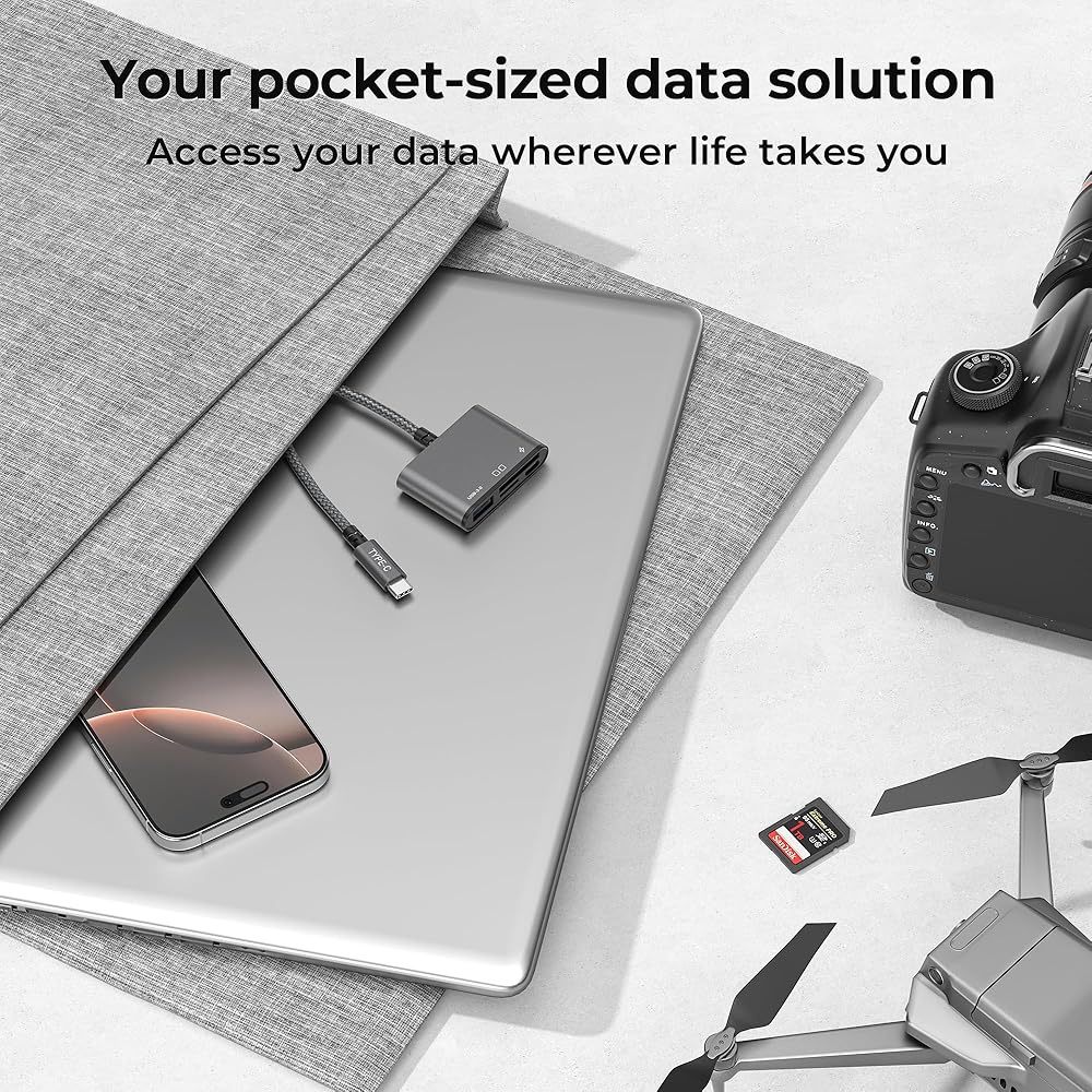 تصميم محمول: التصميم بحجم الجيب لقارئ بطاقة SD هذا يجعل من السهل حمله أثناء التنقل. سواء كنت في رحلة أو رحلة عمل، يمكنك التعامل بسهولة مع احتياجات نقل البيانات الخاصة بك في أي وقت.