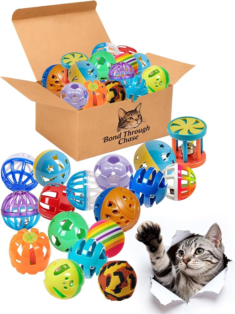 - كرات مشرقة وملونة: تأتي مع 12 لونًا ونمطًا مختلفًا من كرات جلجل الممتعة للمضرب والمطاردة.
