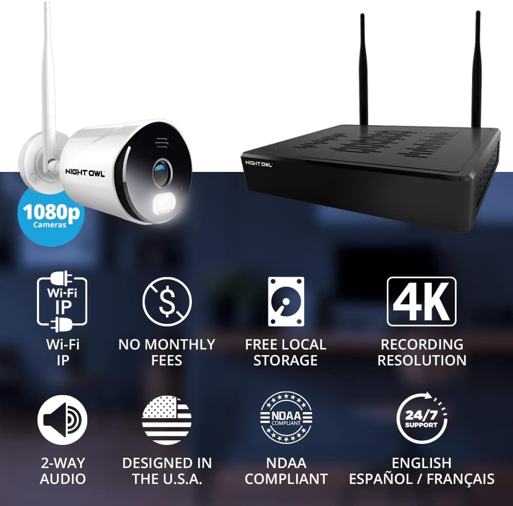 نظام كاميرا فيديو مراقبة للمنزل Night Owl 10 قنوات بلوتوث مع (3) واي فاي IP 4K HD كاميرات كشاف داخلية/خارجية صوت ثنائي الاتجاه وقرص صلب 1 تيرابايت (قابل للتوسيع حتى الكاميرات)، BTWN81L-2-3-B