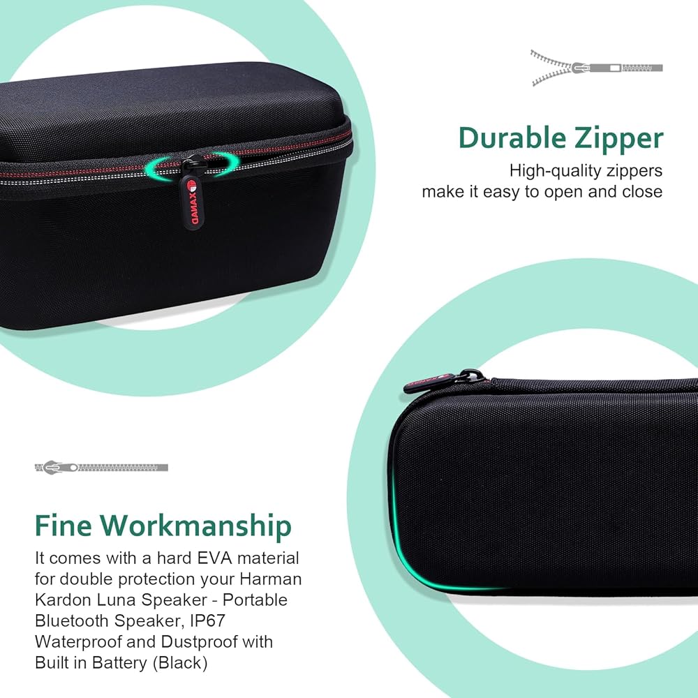 سعة أكبر: يمكن أن يناسب الجراب الصلب مكبر صوت بلوتوث المحمول Harman Kardon Luna بشكل مثالي ويحتوي على مساحة تخزين للكابلات أو سلك الشحن