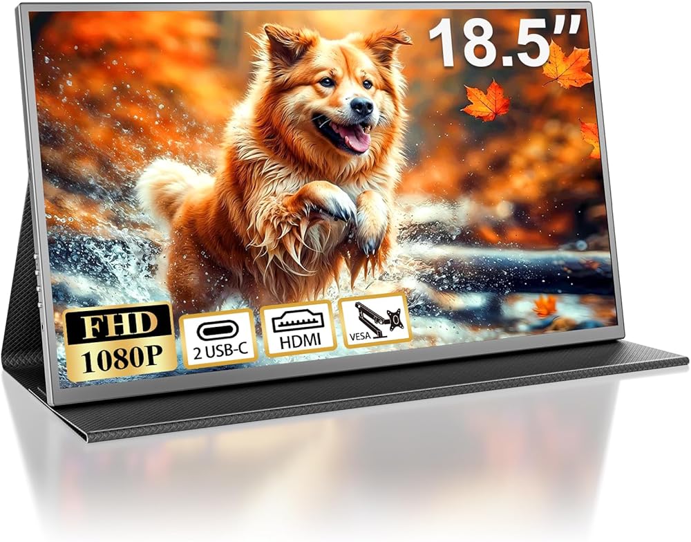 شاشة محمولة مقاس 18.5 بوصة، شاشة كمبيوتر محمول FHD IPS 1080P USB C HDMI للألعاب، شاشة رفيعة للغاية مع حامل ومكبر صوت غير مرئي، التوصيل والتشغيل، شاشة خارجية لأجهزة الكمبيوتر المحمول PC Mac Xbox PS5/PS4 Switch