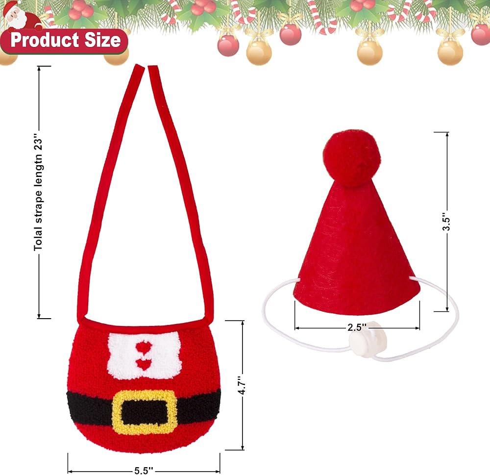 Package: 1 pc red cat party hat, 1 pc red santa clothe pattern kitten christmas bandana