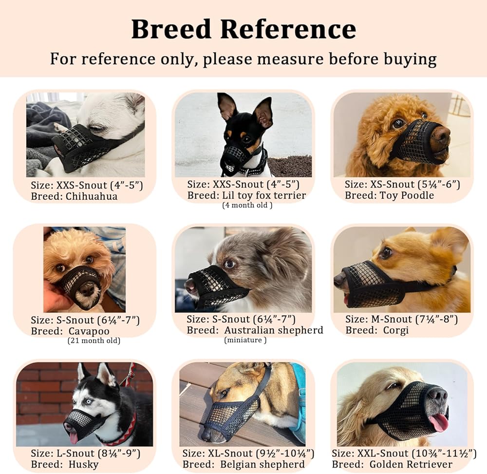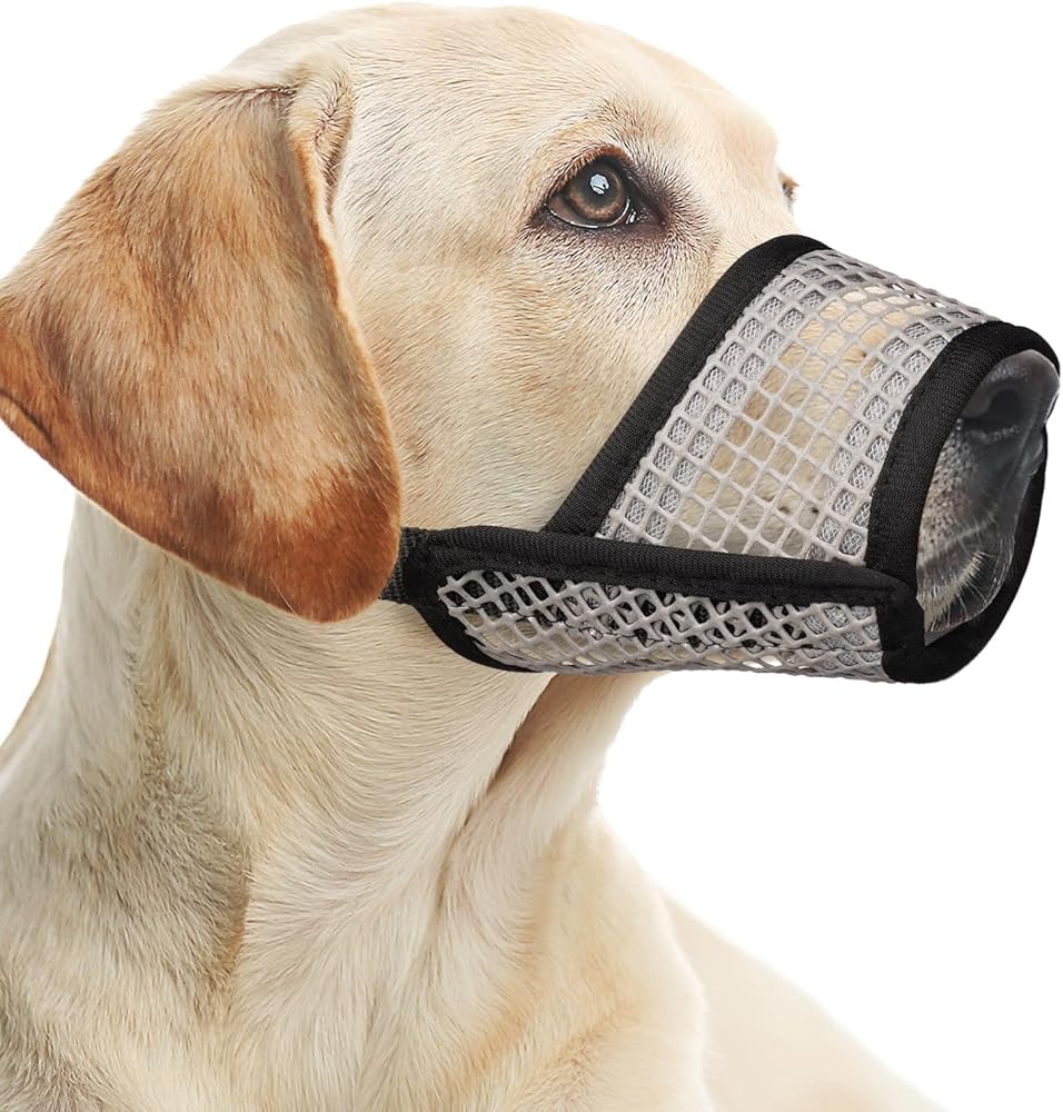 كمامة للكلاب الكبيرة: كمامة شبكية للكلاب من مايرزون متوفرة في 7 أحجام. الحجم XXL (مناسب لمحيط الخطم بين 10¾''-11½'') مثالي للسلالات مثل لابرادور وغولدن ريتريفر، ولكن لا يُنصح به للسلالات قصيرة الخطم مثل شيه تزو، وبيت بول، وبوكسر، إلخ.