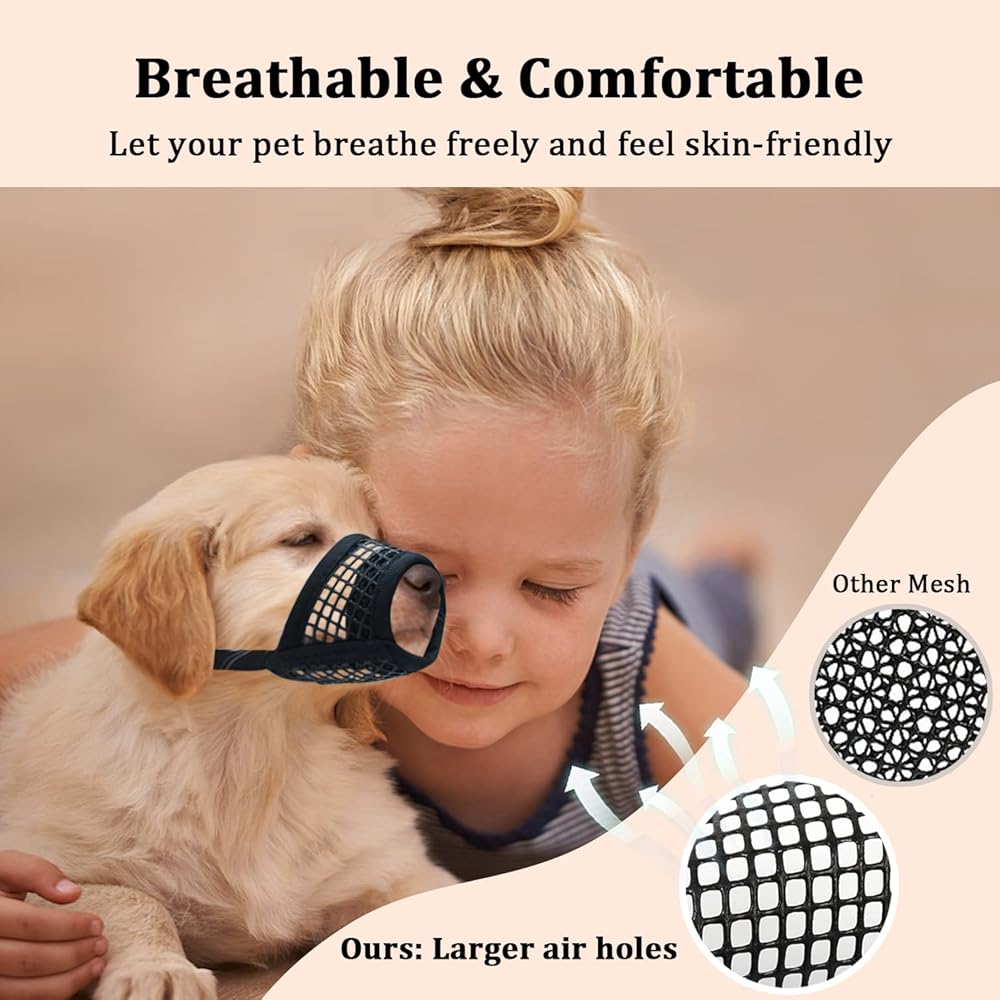 كمامة شبكية فائقة التهوية: مصنوعة من شبكة ممتازة، كمامة الكلاب الشبكية الخاصة بنا ناعمة ولكنها لا تزال مقاومة وتدوم طويلاً. يسمح التصميم الشبكي فائق التهوية الذي تمت ترقيته حديثًا لكلبك بالتنفس بحرية والشعور براحة أكبر أثناء ارتدائه. يمكن للحشوة الناعمة الإضافية أن تحمي الجزء الأمامي من أنف كلبك من الاحتكاك وهي أكثر ملاءمة للبشرة