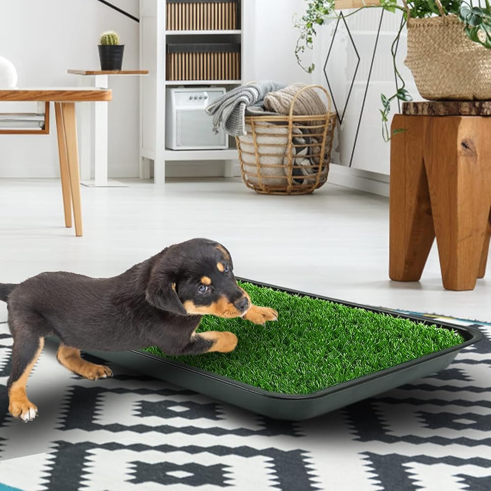 ضع السجادة على العشب حتى تتمكن أنت وكلبك من الاستمتاع باللعب وتناول الطعام على السجادة. ضع منصات في الجزء السفلي من القفص لامتصاص البول دون رشه على الأرض.