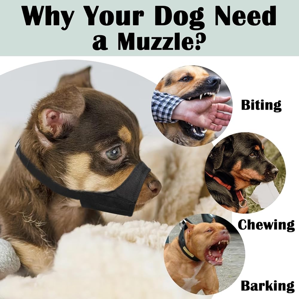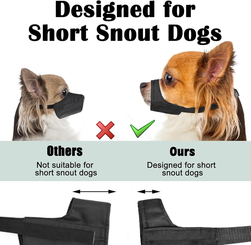 Mayerzon كمامة قصيرة للكلاب، كمامة ناعمة للكلاب الصغيرة والمتوسطة الكبيرة، كمامة لتشيهواهوا شيه تزو البلدغ الأمريكي بيتبول للاستمالة، واقي فم كلب أكسفورد المتين ضد العض ومضغ النباح