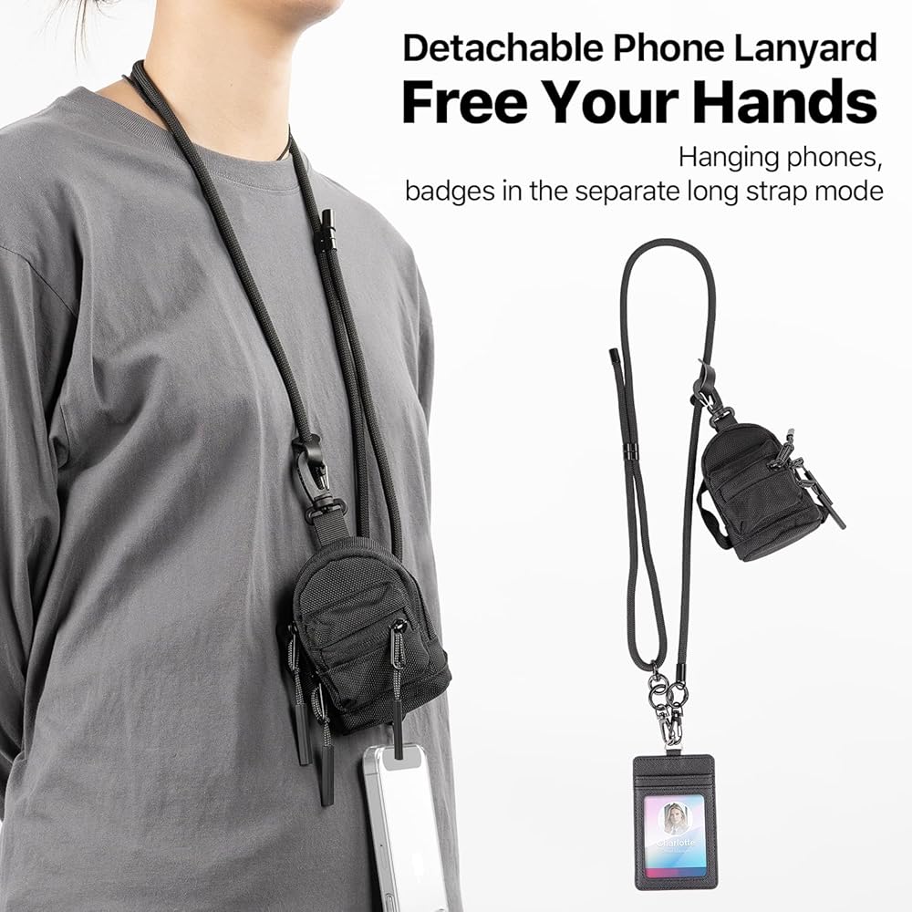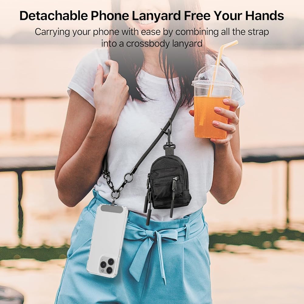 SOOPII حزام الهاتف المحمول مع محفظة قابلة للفصل، حزام بدون استخدام اليدين للهاتف مع حقيبة ظهر حامل بطاقات صغيرة بسحاب، حبل هاتف قابل للتعديل مع حامل عملات معدنية للهواتف المختلفة