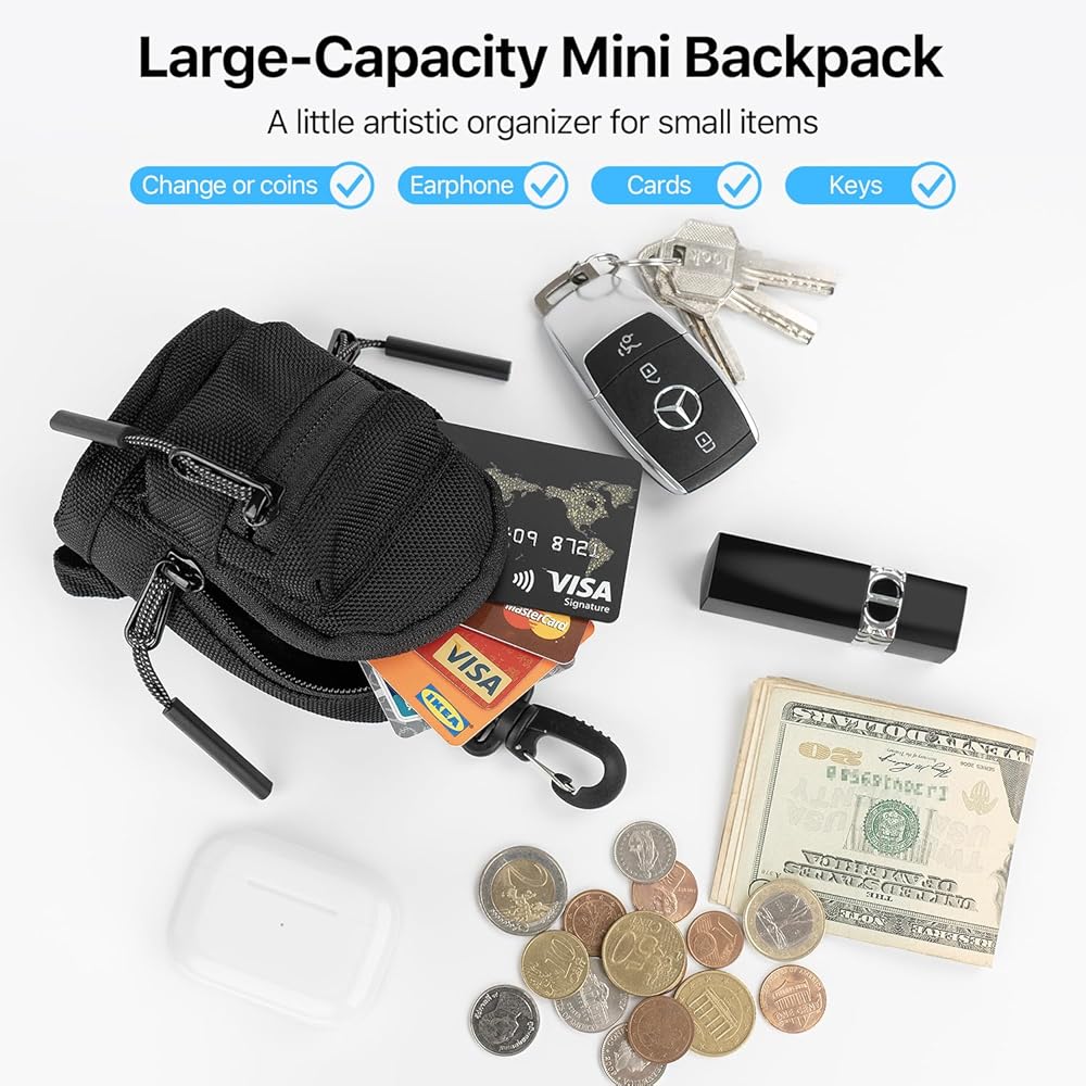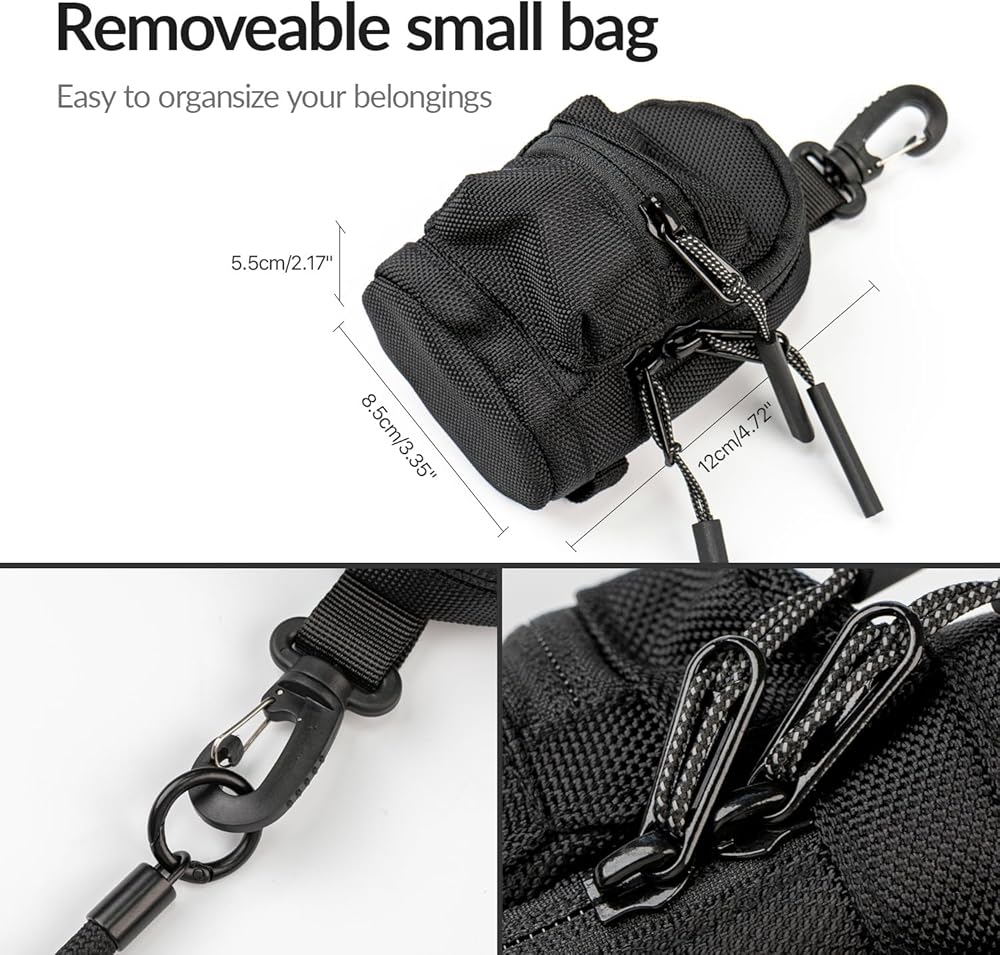 أنيقة ومتينة: مصنوعة من مادة البوليستر عالية الجودة بالإضافة إلى مادة النايلون، كما أن حبل التعليق القابل للفصل وحقيبة حامل العملات المعدنية الصغيرة قوية ومتينة. تصميمها الأنيق ولونها الأسود الكلاسيكي يجعلها إضافة متعددة الاستخدامات لأي ملابس، بينما يضمن الحزام القابل للتعديل مناسب بشكل مريح لجميع أنواع الجسم، بينما يحافظ التصميم القوي على متعلقاتك آمنة.