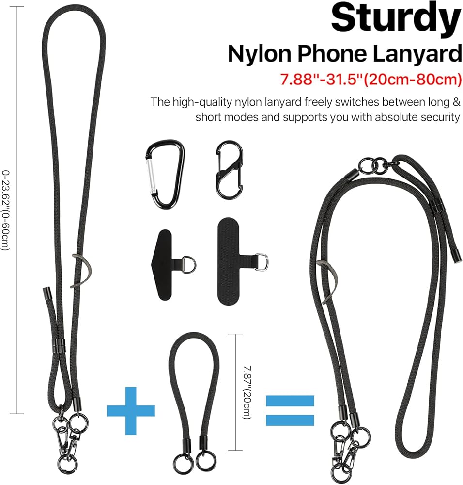 حبل متعدد الاستخدامات وقابل للفصل: سميك ومتين وقابل للتعديل، يمكن تقسيم حبل الهاتف SooPii بسهولة إلى حبل رقبة الهاتف وحزام معصم قصير للهاتف. عند دمجه، يصبح حزامًا طويلًا لهاتفك. إنه مثالي لتعليق هاتفك أو مفاتيحك أو سماعات الأذن أو بطاقة تعريف العمل، وهو مريح للغاية.