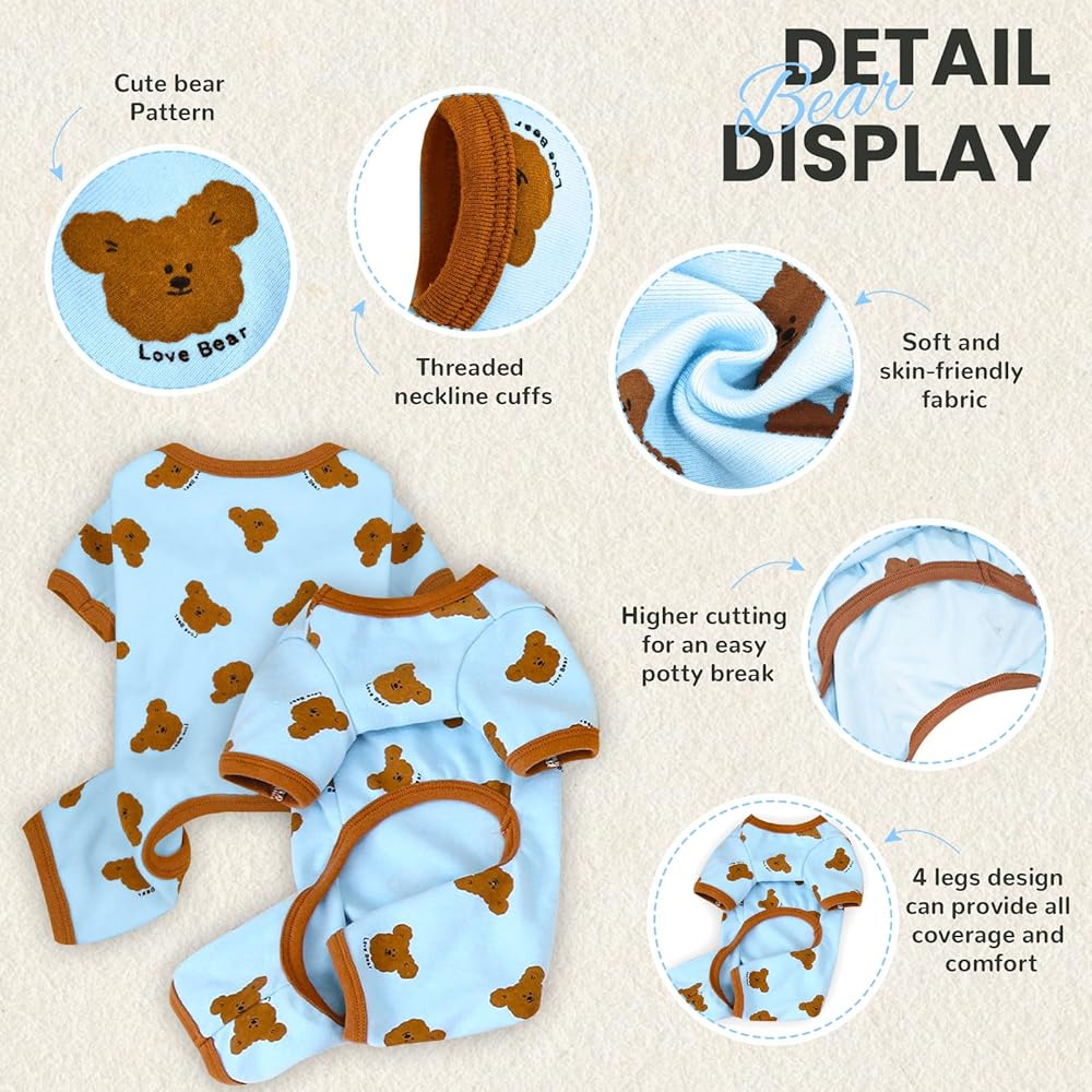 طباعة دب رائعة: تتميز بيجامات الكلاب لدينا بألوان نابضة بالحياة مطبوعة على شكل دب رائع، رسومات Pjs عالية الجودة مطبوعة بمعدات متقدمة لضمان متانة دائمة