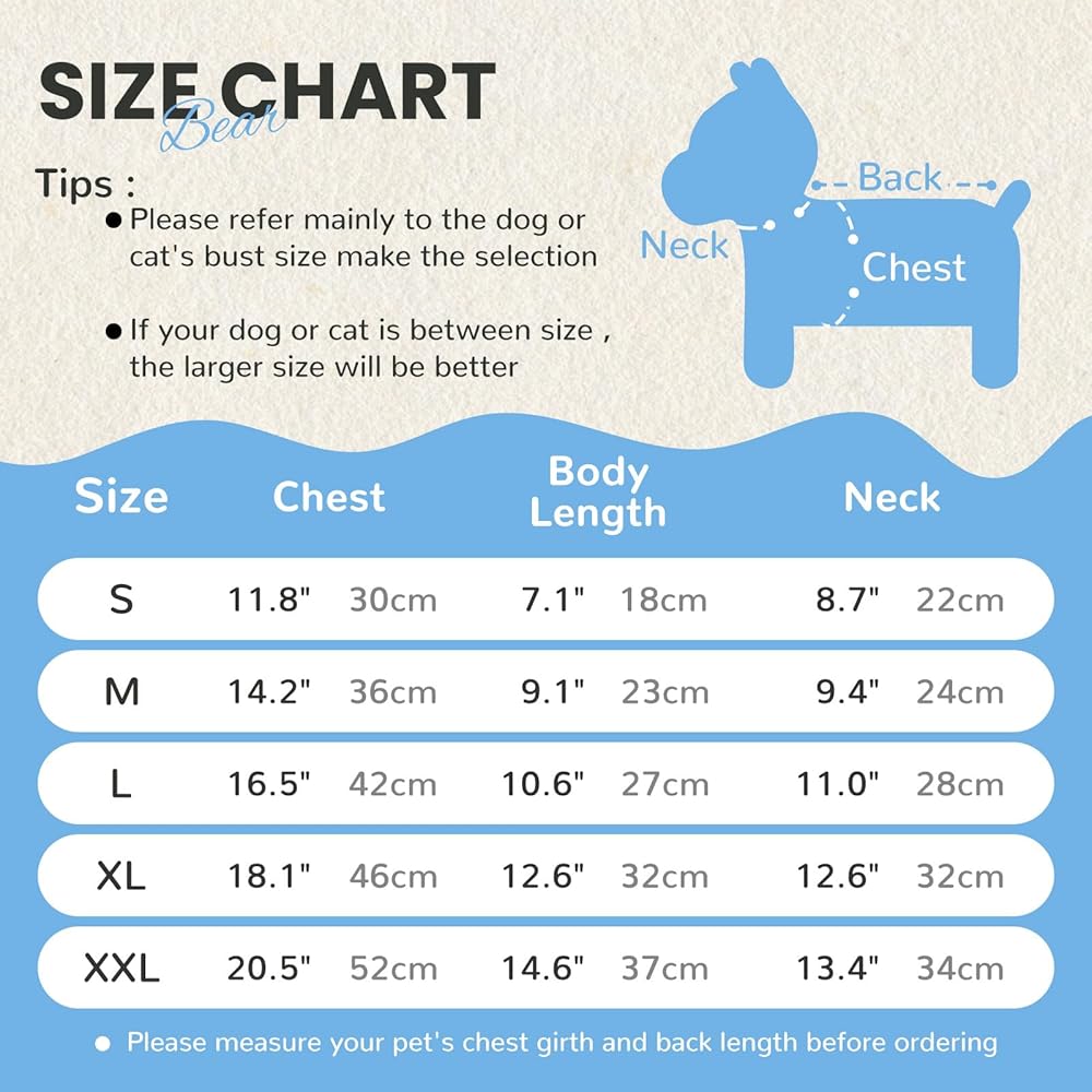حول المقاس: للحصول على بيجامة مناسبة للكلاب الصغيرة، يرجى عدم اختيار المقاس بناءً على مقاسك المعتاد. قم بقياس طول ظهر كلبك أو قطتك كأولوية، واحصل على المقاس المناسب بناءً على جدول المقاسات الخاص بنا.