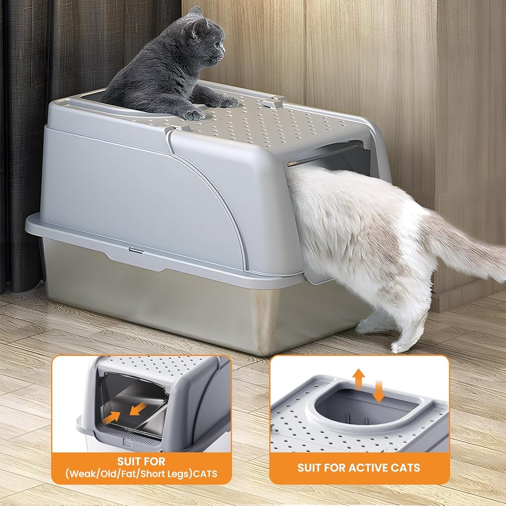 • Non-odor absorption: Metal cat litter box does not absorb odor, better than other cat litter boxes, less odor at home. Large pieces of cat litter won't stick to the bottom of the metal litter box, and the sturdy stainless steel box won't rust. Easy to clean and wash, creating a wonderful environment for cats and their parents