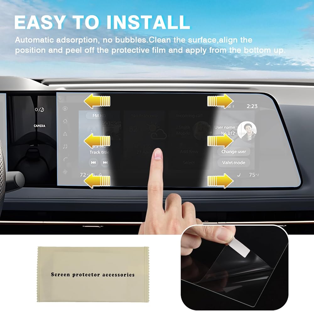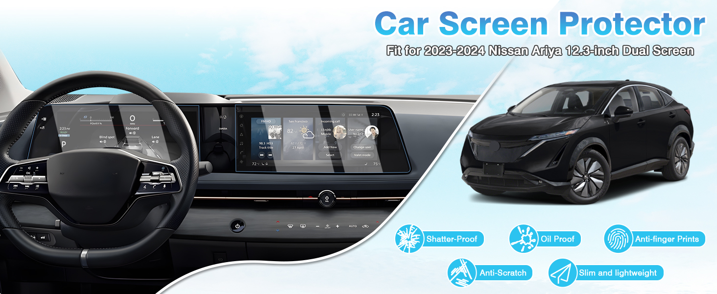 • 【ملاءمة مثالية، بدون فقاعات】مصممة خصيصًا لملحقات نيسان أريا 2023 2024 2025 شاشة مزدوجة 12.3 بوصة. تم قصه بشكل مثالي، ويناسب جيدًا، ويتم تركيبه بسهولة، ولا يترك أي فقاعات أو بقايا وراءه.