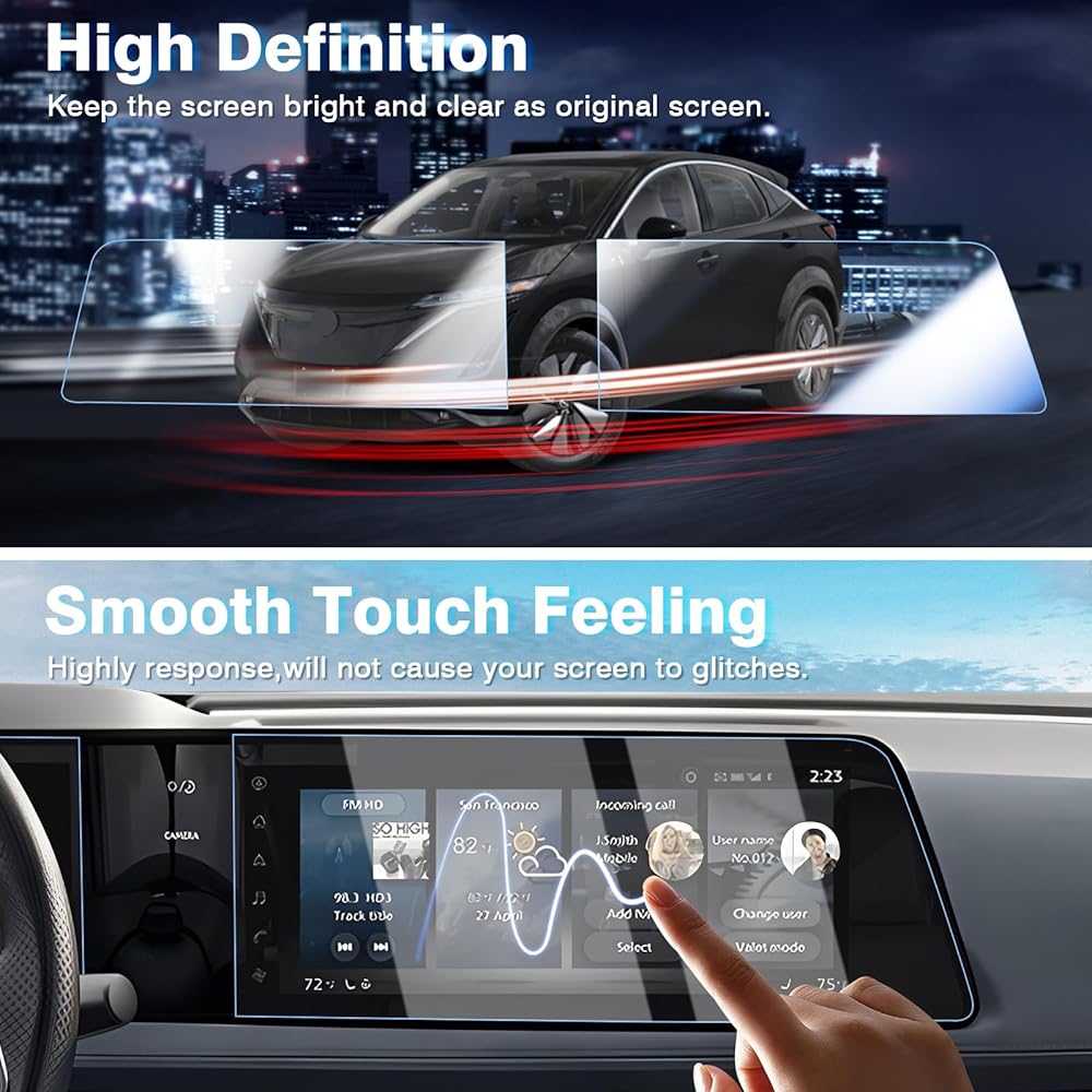 • 【مادة نانو ممتازة】مصنوعة من مادة نانو عالية الجودة، وصلابة سطح 9 ساعات، ومضادة للوهج، ومضادة لبصمات الأصابع، ومضادة للخدش والكسر. يوفر واقي الشاشة لسيارة نيسان أريا 2024 حماية شاملة ضد الخدوش وغيرها من أشكال التلف، ويضمن رؤية واضحة وسلسة في جميع الأوقات.