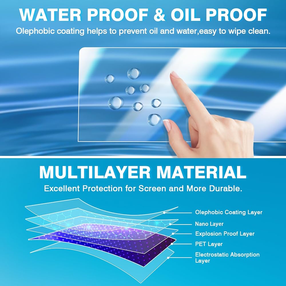 • 【وضوح مثالي، استجابة رائعة للمس】لا يترك واقي شاشة اللمس بصمات الأصابع، ويوفر وضوحًا استثنائيًا ويجعل شاشة اللمس أكثر استجابة. يناسب تمامًا ويعمل بشكل جيد، لا يمكنك معرفة وجود واقي الشاشة.