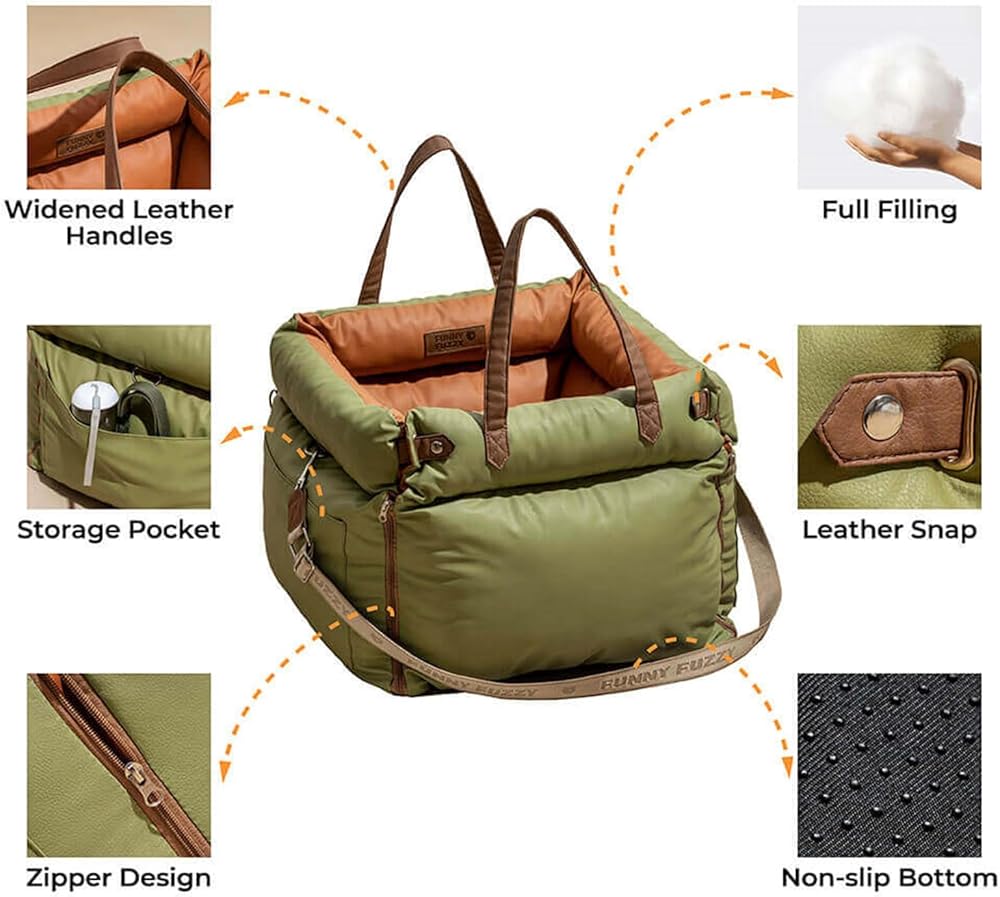 【ميزات السلامة المحسنة】 السلامة هي أولويتنا القصوى. تم تجهيز مقعد السيارة FUNNYFUZZY ببطانة مرتفعة وسميكة لتقليل التأثير أثناء السفر، ومقاود أمان مدمجة قابلة للتعديل تضمن سلامة حيوانك الأليف دون المساس بالراحة. الجزء السفلي المضاد للانزلاق يحافظ على المقعد في مكانه، مما يوفر الثبات حتى في الظروف القاسية.