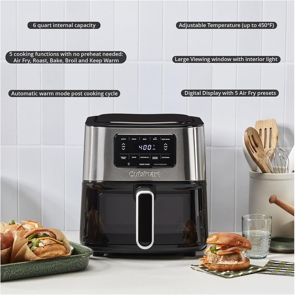 Cuisinart Temperature Control, Stainless Steel and Black, Digital Display Basket Air Fryer