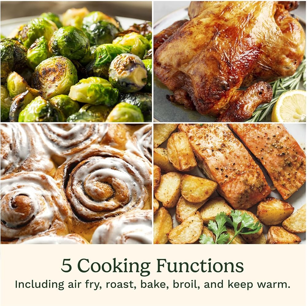 Five popular pre-programmed settings, a toss notification to flip food mid-way through cooking, and a convenient viewing window make it easy to air fry, roast, bake, broil, and warm food with delicious results every time. Lighten up your menu with the convenient air fryer that does more for mealtime!