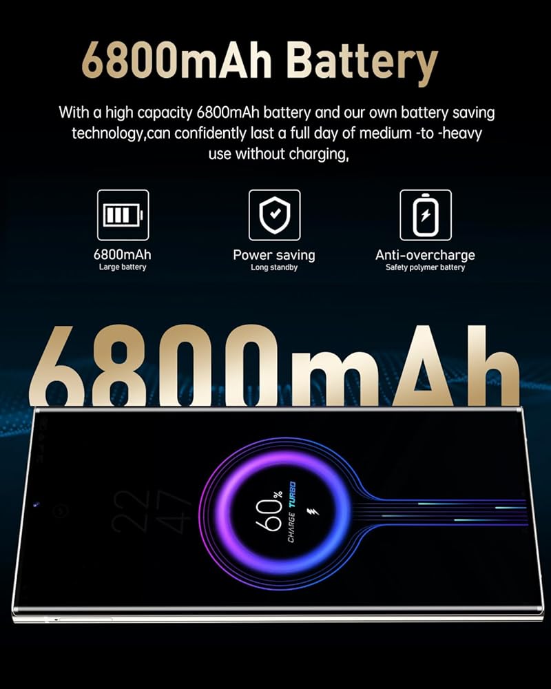 • ✅[بطارية 6800 مللي أمبير في الساعة وشحن 18 وات] تم تجهيز هاتف C24 Ultra ثنائي الشريحة ببطارية ضخمة 6800 مللي أمبير في الساعة وتقنية توفير البطارية الخاصة، كل ما تريد القيام به مدعوم به. شحن سريع مع شاحن بقوة 18 واط ونظام ملاحة GPS لسفر خالي من القلق