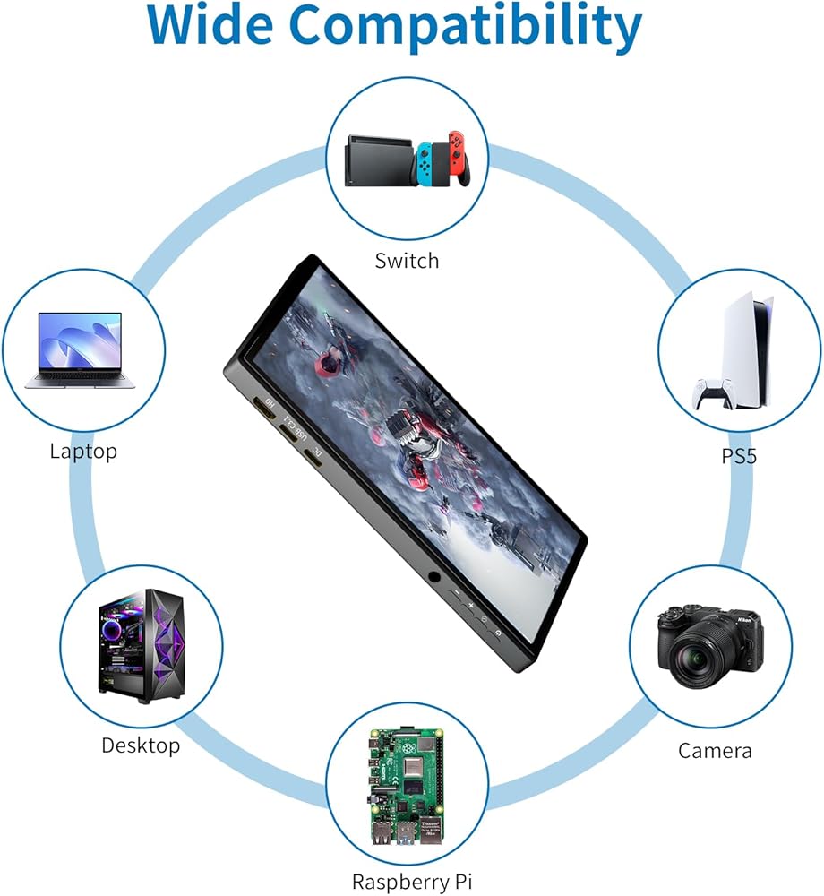 شاشة IPS 1080P 60 هرتز: هذه الشاشة الصغيرة المحمولة مقاس 7 بوصة بدقة FHD 1920 × 1080، ومعدل تحديث 60 هرتز، وشاشة IPS، وسطوع 500cd/m2، وزاوية عرض 178 درجة. توفر ألوانًا نابضة بالحياة وتجربة مشاهدة سلسة، وتحافظ على عينيك من التعب بعد الاستخدام لفترة طويلة