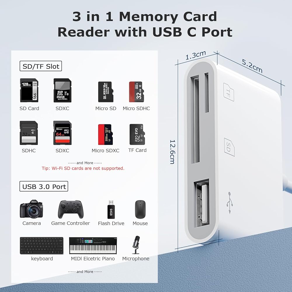 • 【افعل الأفضل】باستخدام محول USB C إلى USB مع قارئ بطاقات SD/TF، ​​سوف يمنحك المزيد من الراحة. نصائح ودية: لا يمكن قراءة بطاقة SD وبطاقة Micro في وقت واحد، ولكن يمكن التعرف على بطاقة SD/Micro وجهاز USB المحيطي في وقت واحد.