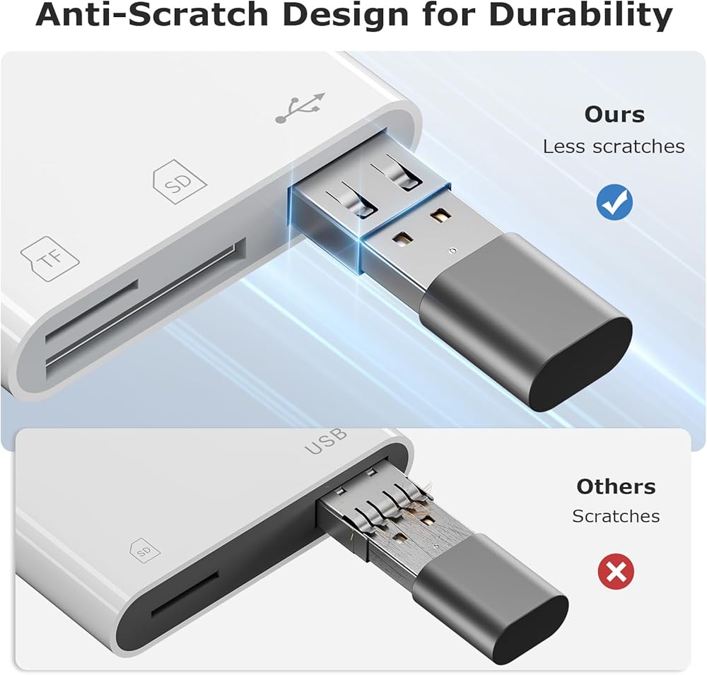• 【التوصيل والتشغيل】لا يتطلب قارئ بطاقة SD تطبيقًا، ولا يمكنك فقط قراءة بطاقة SD/TF الخاصة بك، ولكن أيضًا استخدام جهاز USB مثل الكاميرات، ومحركات الأقراص المحمولة، ولوحة المفاتيح، والفئران، والقرص الصلب، إلخ. باستخدام محول USB C إلى USB، يمكنك نسخ المناظر الجميلة وصور الأشخاص اللطيفين ومقاطع الفيديو إلى iPhone 15 أو أي جهاز مزود بمنفذ من النوع C. يعد هذا اختيارًا ممتازًا لنسخ الصور أو مقاطع الفيديو من الكاميرا في وقت قصير.