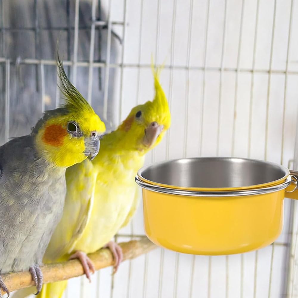 أوعية الطيور من الفولاذ المقاوم للصدأ من فانزاك، وعاء مياه الطيور، أوعية مياه طعام الببغاء للطيور مع مشبك، مغذيات أقفاص الطيور والماء، وعاء طعام الطيور قطعتين