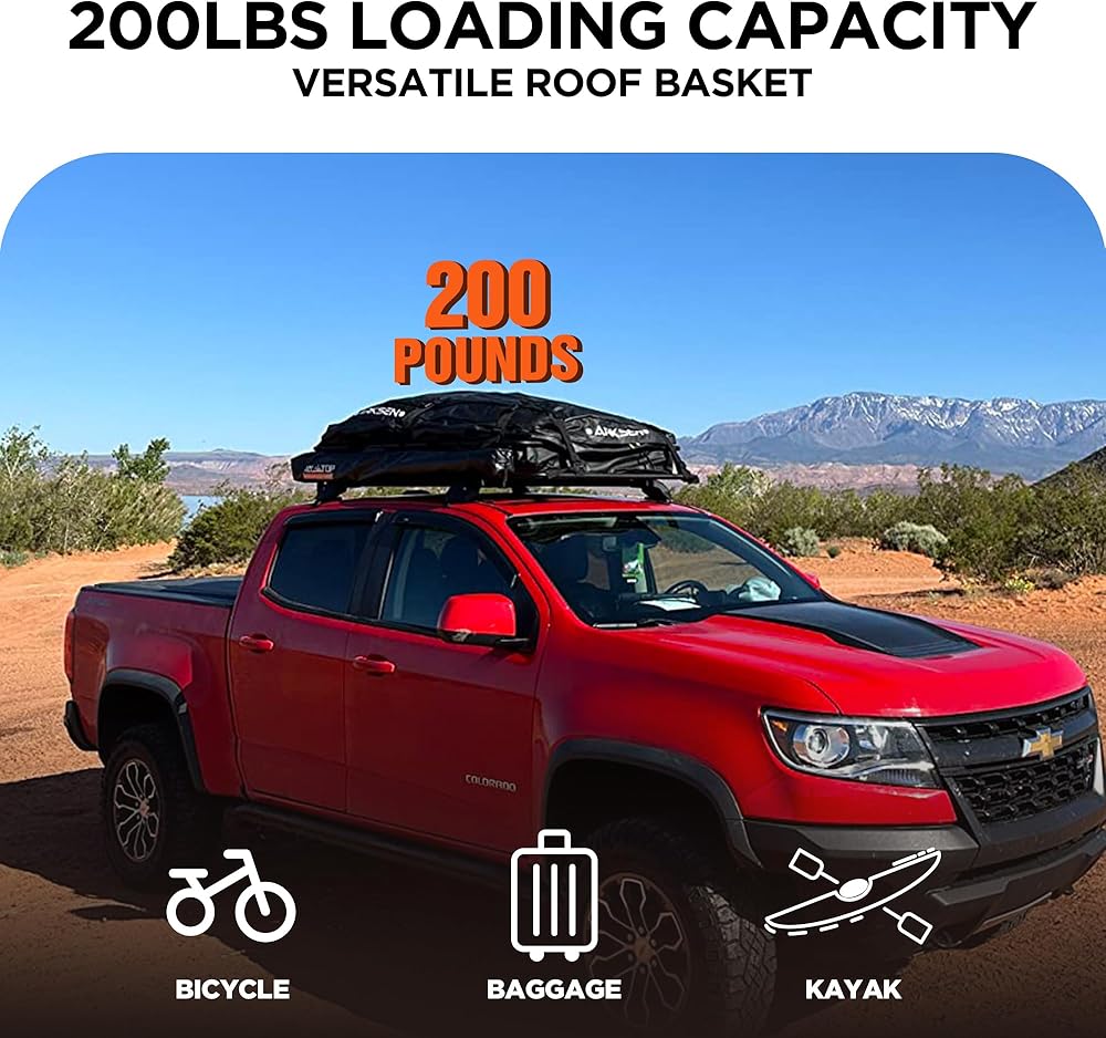 سلة شحن مثبتة على السقف من روكلاند، سعة 200 رطل، رف سقف عالمي، هدية ديناميكية هوائية، مقاومة للطقس، سهلة التركيب لسيارات الدفع الرباعي والسيارات والشاحنات