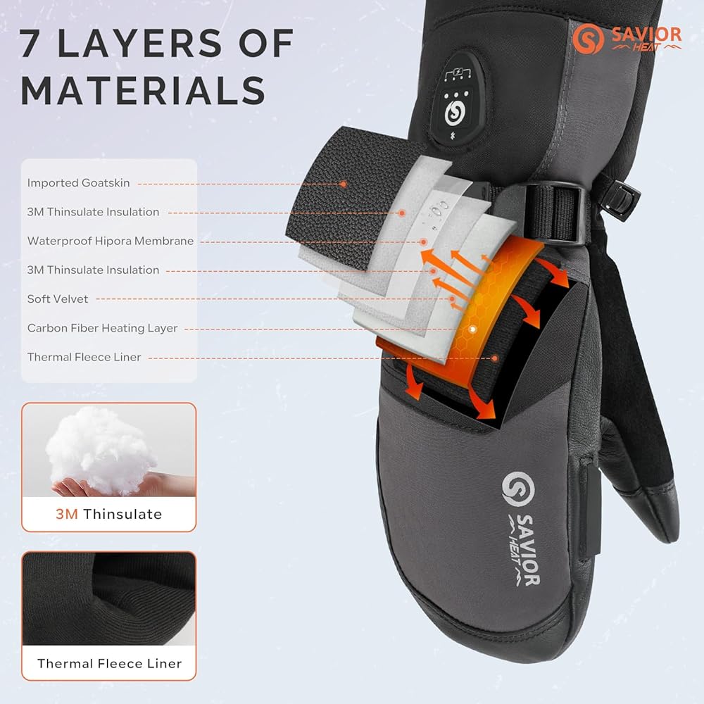 قفازات تدفئة منقذة للحرارة للنساء والرجال، قفازات تزلج كهربائية تعمل بالبلوتوث، بطاريات 7.4 فولت 3000 مللي أمبير مطورة وشحن سريع، قفازات شتوية مقاومة للماء تعمل باللمس مثالية للتزلج على الجليد وركوب الخيل