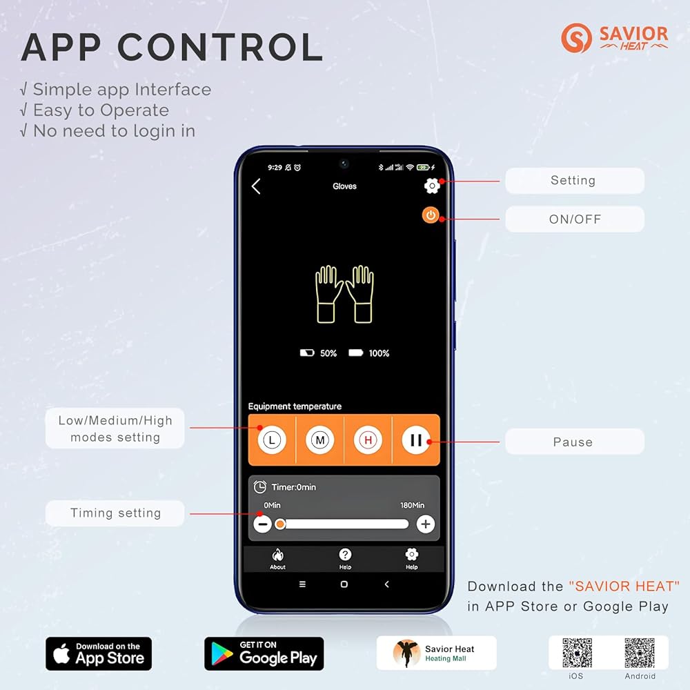 • التحكم عبر البلوتوث والإبهام الصديق لشاشة اللمس: يمكنك إدارة إعدادات البطارية والحرارة بسلاسة من خلال البلوتوث من هاتفك الذكي، مما يزيد من الراحة دون إزالة القفازات. يسمح الإبهام المتوافق مع شاشة اللمس بالوصول السريع للهاتف الذكي، ويجمع بين التكنولوجيا والعملية لجميع أنشطتك الشتوية.