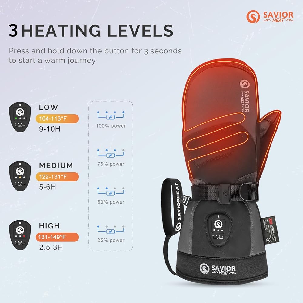 • تسخين قوي وحماية شديدة من البرد: استمتع بالدفء السريع مع عناصر التسخين ذات التغطية الكاملة على اليد والأصابع وأطراف الأصابع، للوصول إلى الحرارة المثالية في غضون 10 ثوانٍ. اختر من بين ثلاثة إعدادات لدرجة الحرارة - عالية (149 درجة فهرنهايت)، ومتوسطة (131 درجة فهرنهايت)، ومنخفضة (113 درجة فهرنهايت) - مثالية للتزلج والتزلج على الجليد والمشي لمسافات طويلة في فصل الشتاء، مما يضمن الدفء حتى في أقسى الظروف.