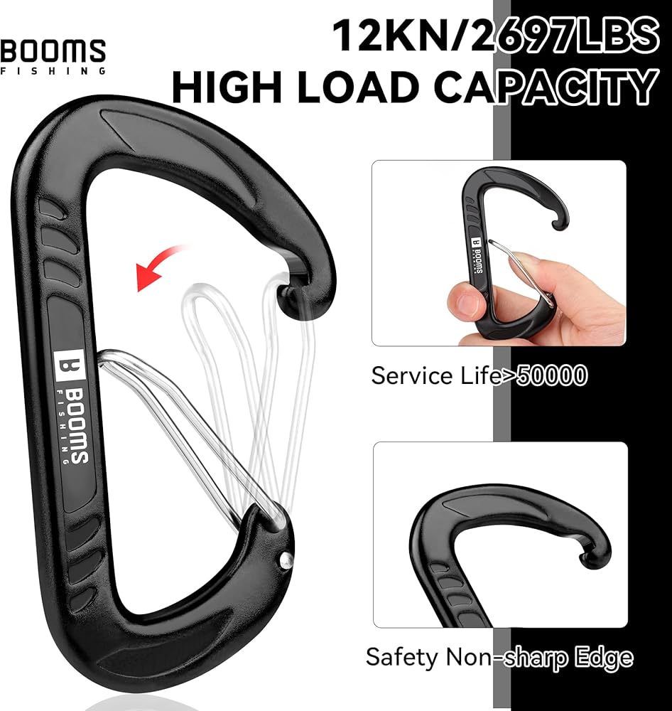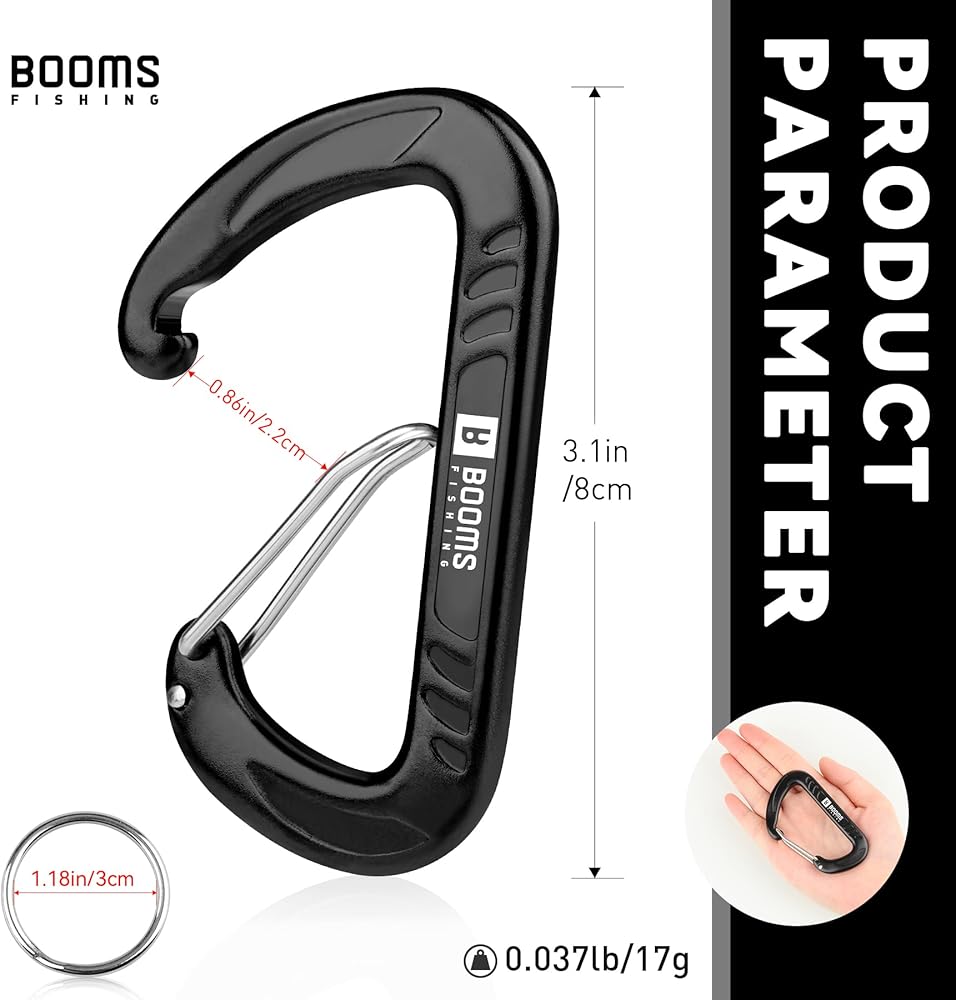 مجموعة CARABINERS ذات قيمة عالية مع حلقة مفاتيح: تتضمن عملية الشراء الخاصة بك 4 حلقات تسلق عالية التحمل و4 حلقات مفاتيح، مما يوفر لك القيمة والراحة. حافظ على تنظيم مفاتيحك ومعداتك آمنة مع حلقة التثبيت المتميزة من Booms Fishing.