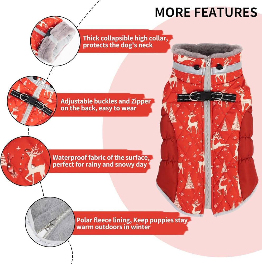 • Cozy & Warm Dog Vest Jacket: CuteBone dog jacket with harness built in is made of waterproof cross-grain, fleece lining with thick fluffy cotton-padded filled material but lightweight, soft touch, warm and comfortable. Water-resistant, wind-resistant and snow-resistant, which keeps your dogs dry and warm in chilly snow & rainy days. Suitable for all kinds of indoor and outdoor activities.