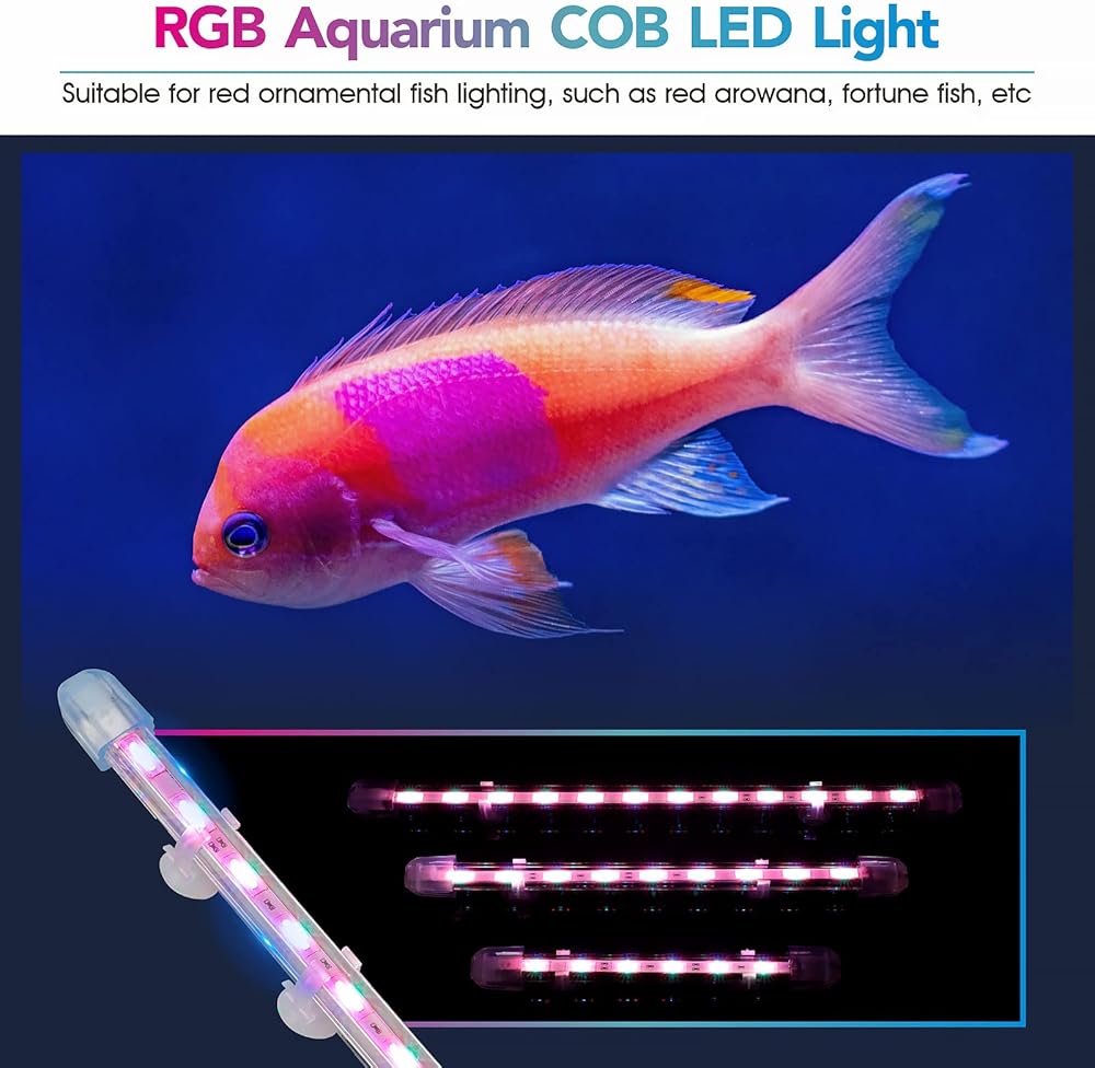 🐟【تطبيق واسع】مصباح LED RGB بطول 24.4 بوصة يناسب أحواض المياه العذبة بعرض 25 بوصة - 40 بوصة. مناسب لإضاءة الزينة الحمراء، مثل الأروانا الحمراء والسمكة الذهبية وغيرها. يمكن لشريط LED COB الساطع أن يجعل خزان الوقود الخاص بك أكثر نشاطًا