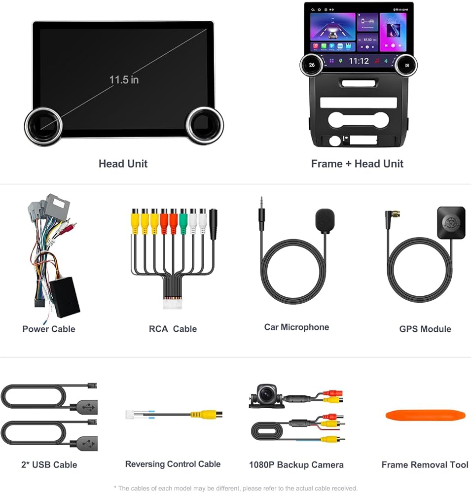 مناسب خصيصًا لراديو السيارة Ford F150 (2009-2014): يتضمن الوحدة الرئيسية، والإطار المخصص، وكابلات الطاقة، والميكروفون، وأدوات الإزالة، وكاميرا خلفية 1080P، ونظام تحديد المواقع العالمي (GPS)، ومجموعة التثبيت، ودليل المستخدم. يحافظ إعداد التوصيل والتشغيل السهل على الأسلاك الأصلية ويدعم التحكم في عجلة القيادة (SWC).