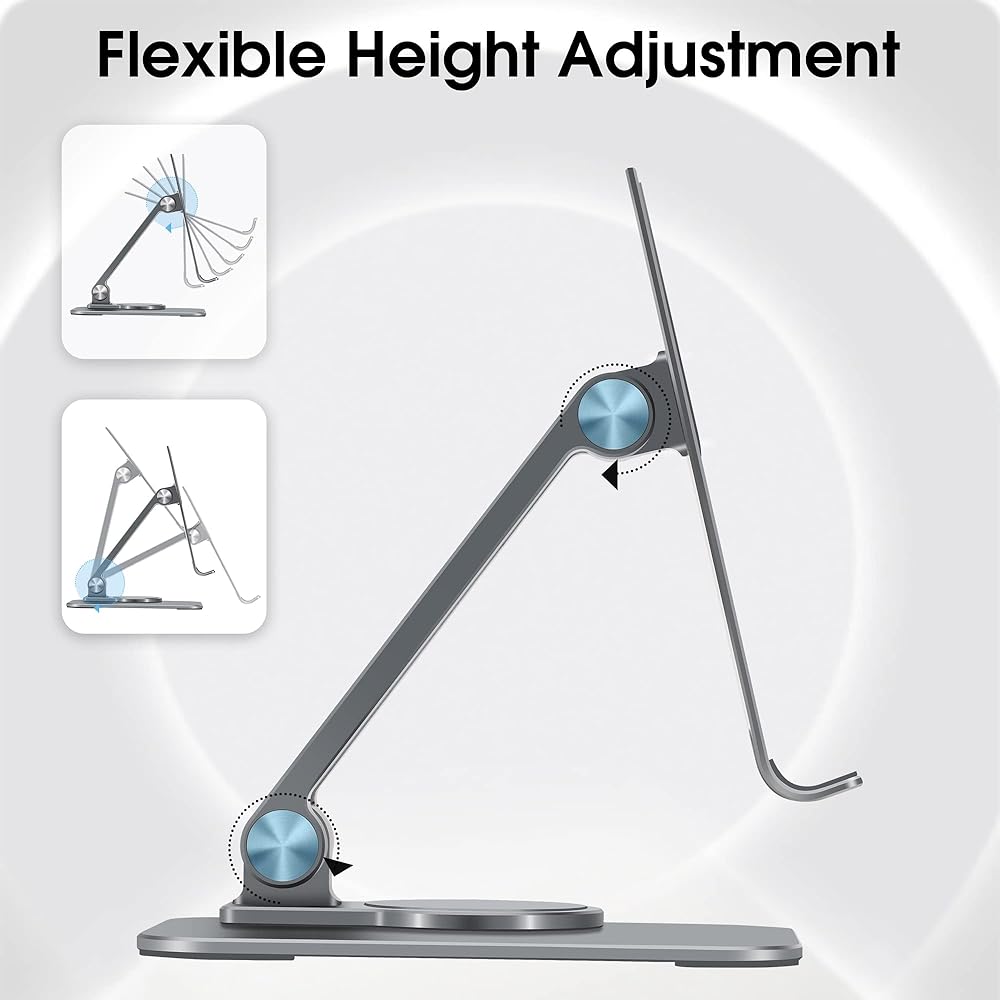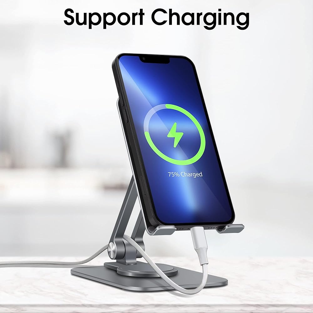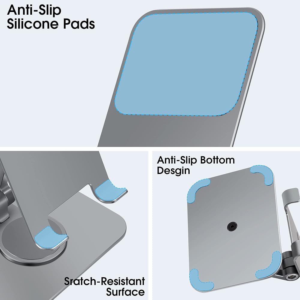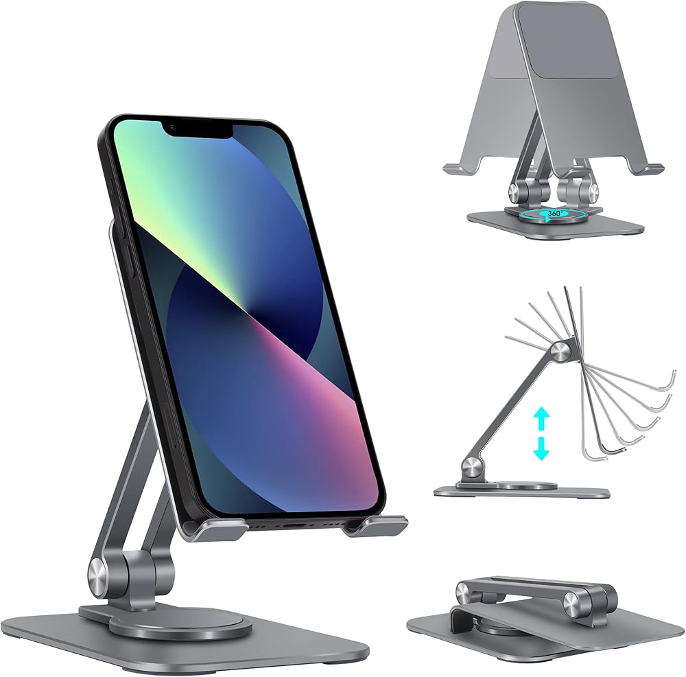 حامل هاتف خلوي قابل للتعديل من Arae، قاعدة دوارة من الألومنيوم قابلة للحمل بزاوية 360 درجة، حامل قابل للطي شديد التحمل متوافق مع iPhone 15/14/13/12/11/Xr/7/8، وهواتف Samsung Galaxy الذكية، وiPad