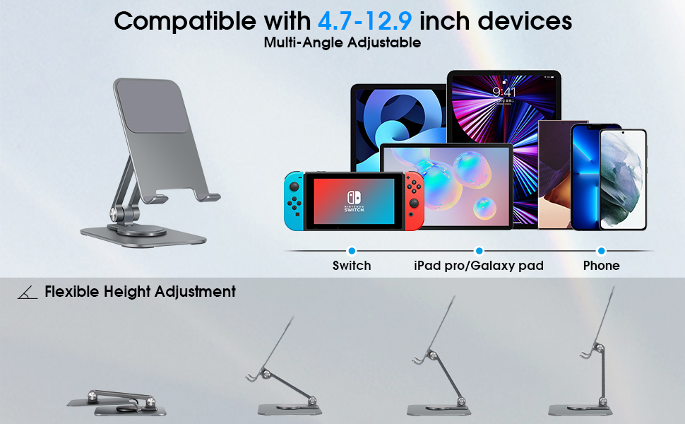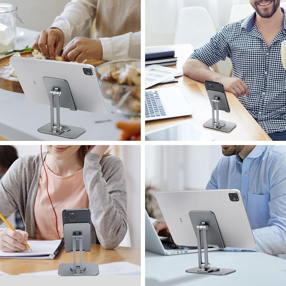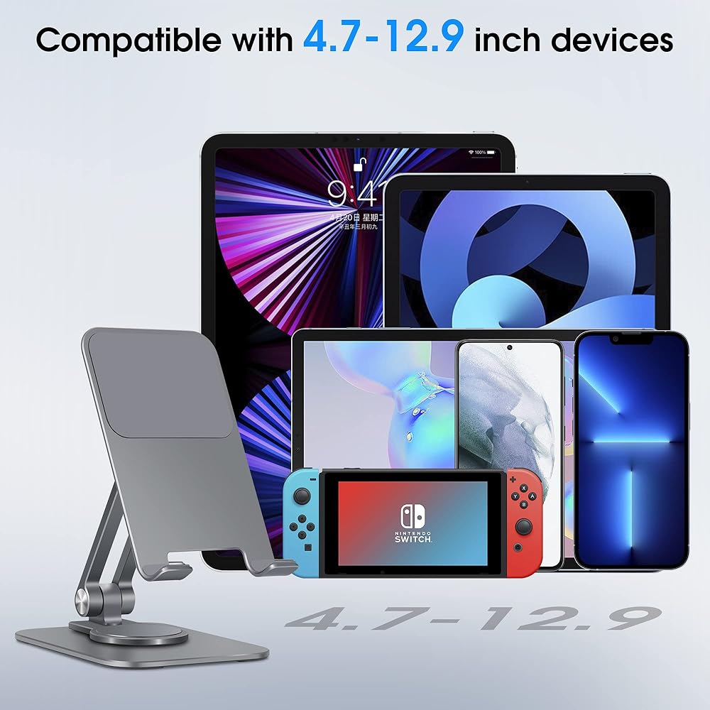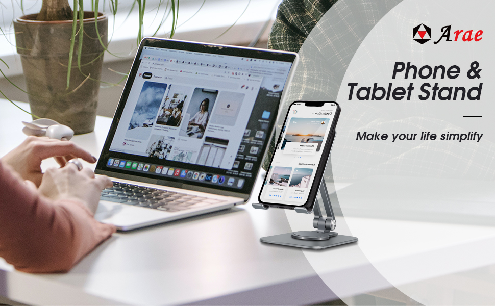 حامل هاتف خلوي قابل للتعديل من Arae، قاعدة دوارة من الألومنيوم قابلة للحمل بزاوية 360 درجة، حامل قابل للطي شديد التحمل متوافق مع iPhone 15/14/13/12/11/Xr/7/8، وهواتف Samsung Galaxy الذكية، وiPad