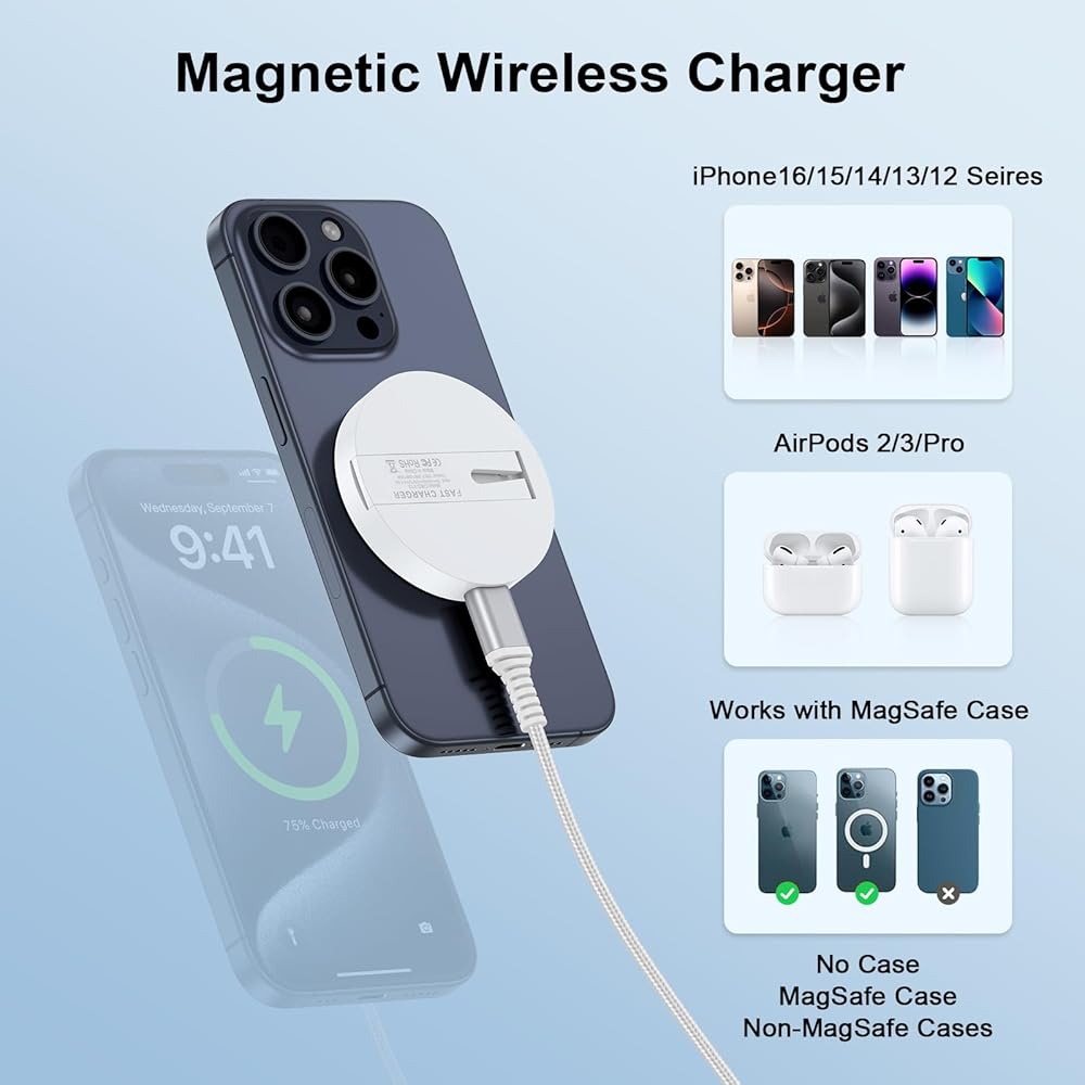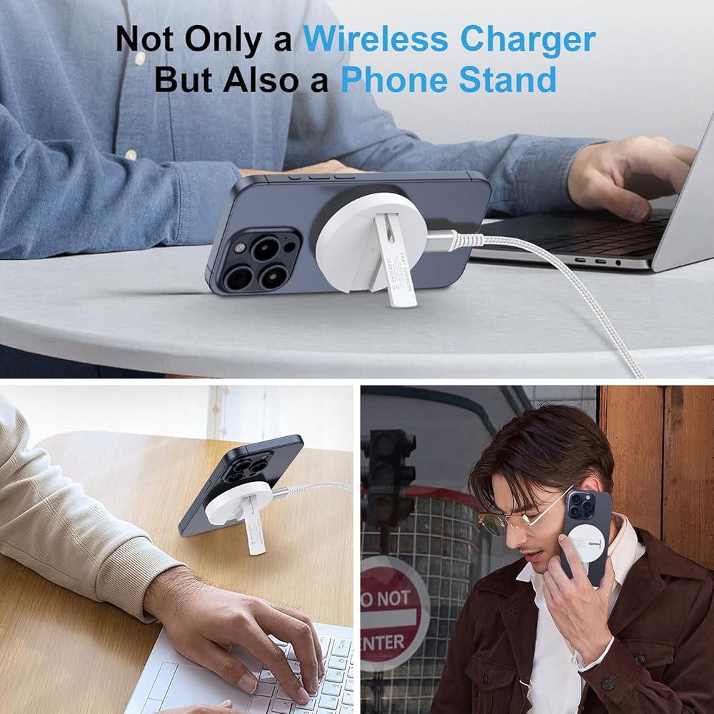The iphone wireless phone charger fast charging pad features auto-alignment technology and a robust magnetic hold to ensure that your iPhone stays securely in place during charging whether you're working,playing games,watching movies,listening to music,or just chatting